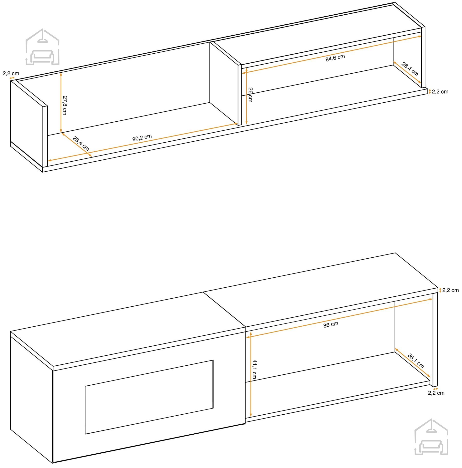 - 2x Stenska polica. Dimenzije: 20x100-120x20 cm.