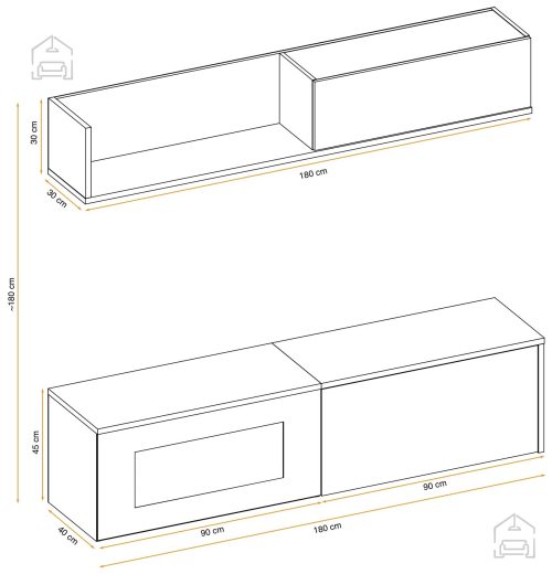 - 1x RTV omarica z 2 odprtima in 1 navadnim predalom na sredini. Dimenzije: 37x180x45 cm.