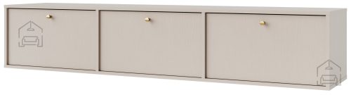 Mehko zapiranjeDimenzije: 1800x350x408 mm Viseča TV komoda Tokyo 4 - 303 je opremljena s tremi loputami, ki omogočajo enostaven dostop do notranjih prostorov za shranjevanje. To omogoča organizirano shranjevanje AV opreme, DVD-jev, knjig in drugih predmetov. Oblikovana v modernem stilu pohištva, kar pomeni čiste linije in minimalističen dizajn, primeren za sodobne notranje prostore.