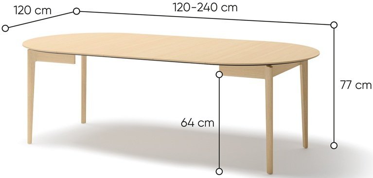 - Raztegljiva funkcija: ena izmed ključnih prednosti te mize je njena raztegljivost. Iz osnovnega premera 120 cm jo lahko enostavno povečate na dolžino 240 cm, kar omogoča več prostora za večje družinske prireditve ali srečanja s prijatelji.