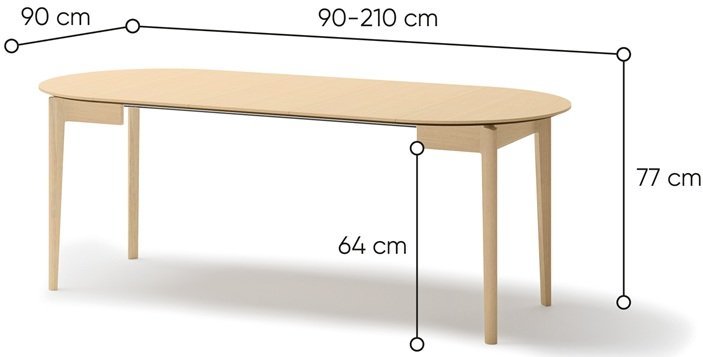 - Prilagodljivost: miza je raztegljiva od 90 cm do 210 cm, kar pomeni, da lahko enostavno prilagodite velikost glede na vaše potrebe. Idealna je za manjše obroke in večje družinske večerje ali zabave.