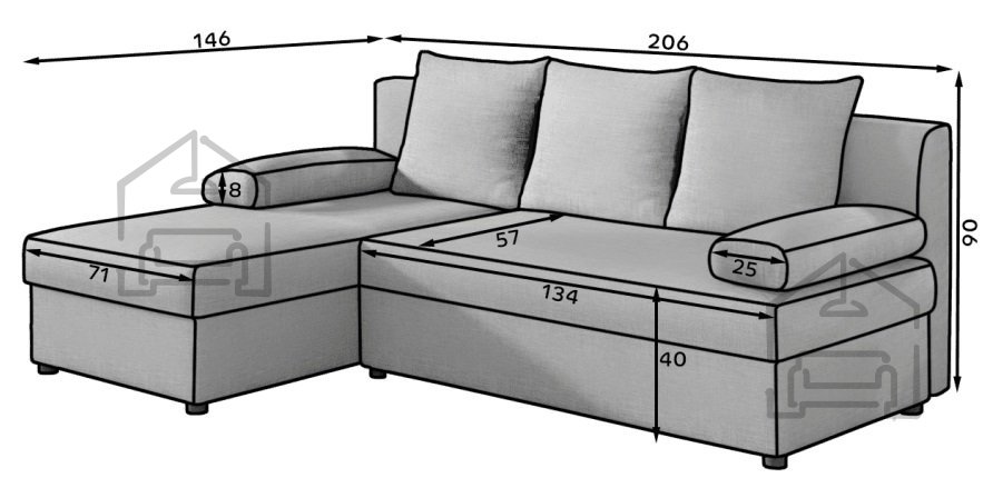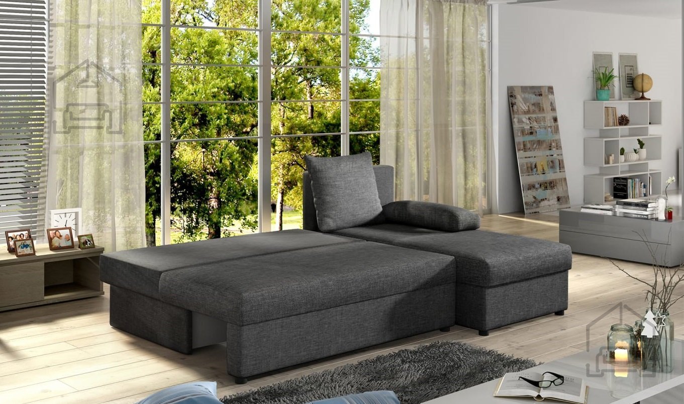 Gino je elegantna, klasična in preprosta kotna sedežna garnitura, ki je kompakten večnamenski kos pohištva z merami 206 x 146 x 90 cm. Ta udoben kos pohištva bo uporabniku zagotavljal maksimalno udobje vsak dan, udobje ponoči in splošno zadovoljstvo – ne glede na uro. Spalna površina z dimenzijami 206 x 120 cm vam omogoča uživanje v izjemni mehkobi pri vsakodnevni uporabi.