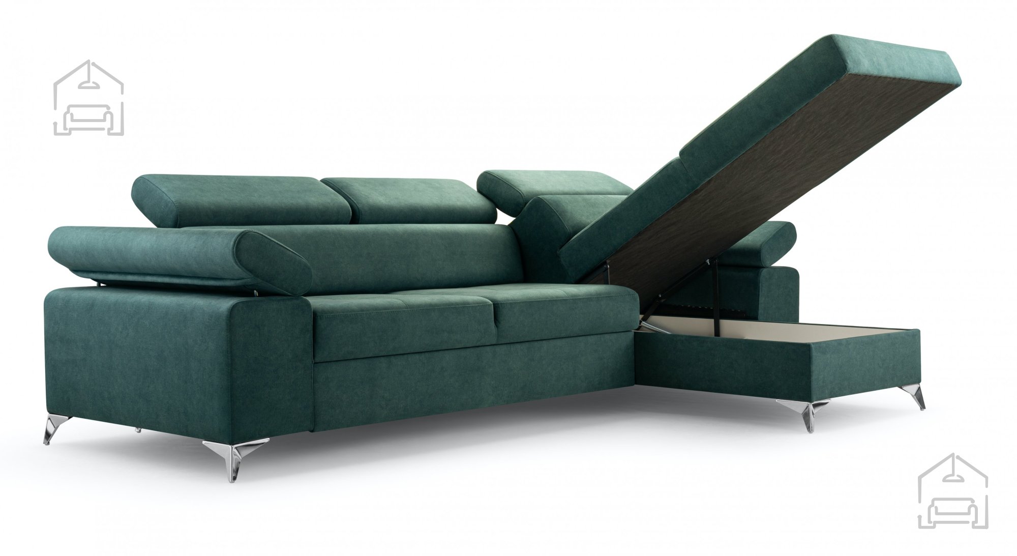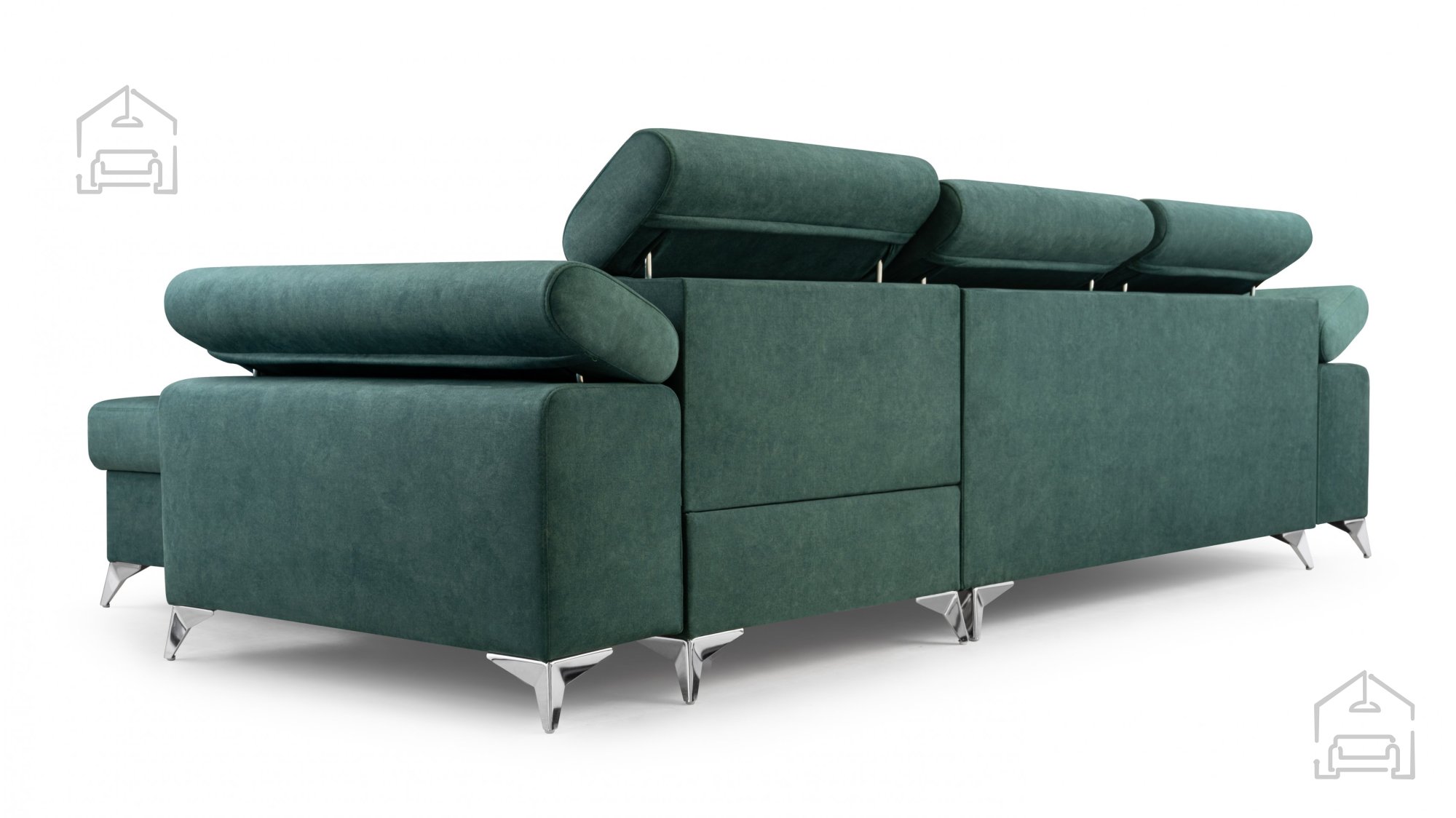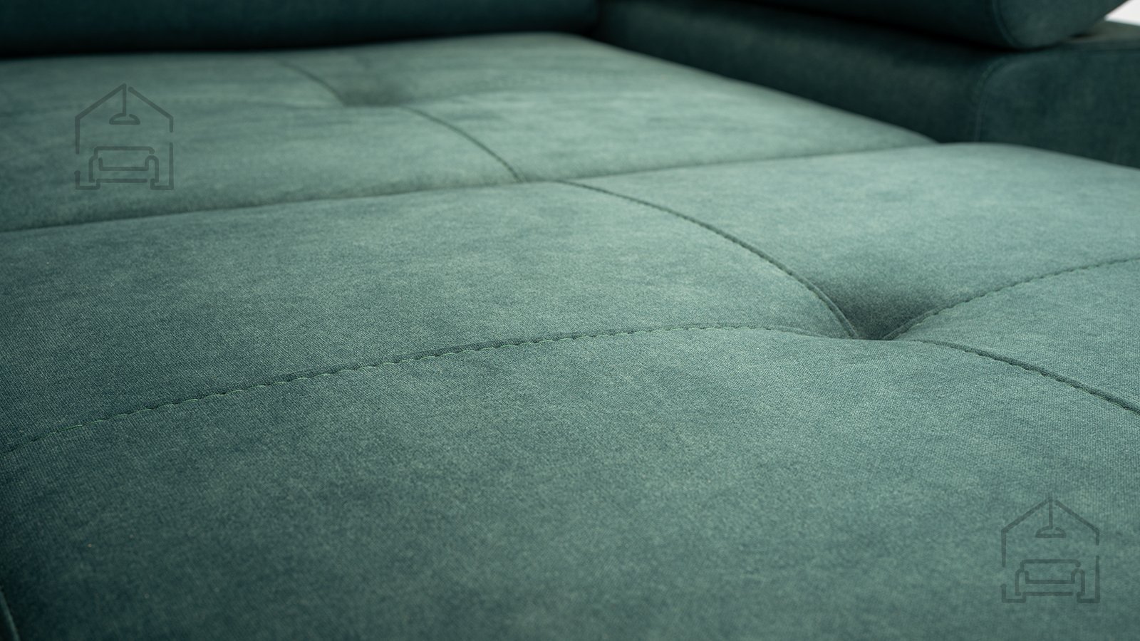 Kotna sedežna garnitura Madryt s spalno funkcijo je na voljo v zanimivih barvah, moderne srebrne nogice pa ji dajejo moderen stil. Nastavljiv naslon za hrbet. Kotna stranica z nastavljivim naslonom za roke. Kotiček je opremljen s spalno funkcijo 203x127cm in predalom za posteljnino. Zadnja stran kota je oblazinjena z materialom, ki se barvno ujema s celoto. Po razgrnitvi je spalni del oblazinjen v barvi kota. Kotna sedežna garnitura iz žameta, pliša. Tkanina Vena je na dotik zelo prijeten material za oblazinjenje. Ima debelo podlogo, ki ji daje volumen in zagotavlja zelo visoko vzdržljivost. Tkanina je izdelana v tehnologiji Easy Clean, zato vzdrževanje čiste ne bo problem.