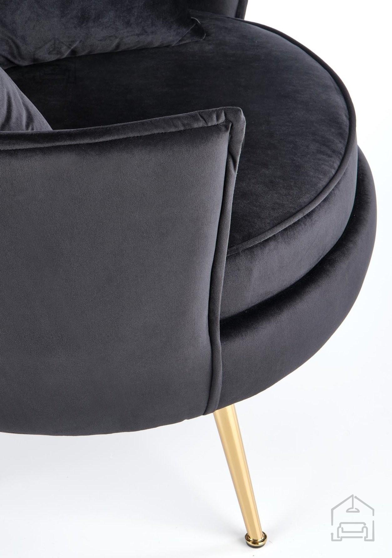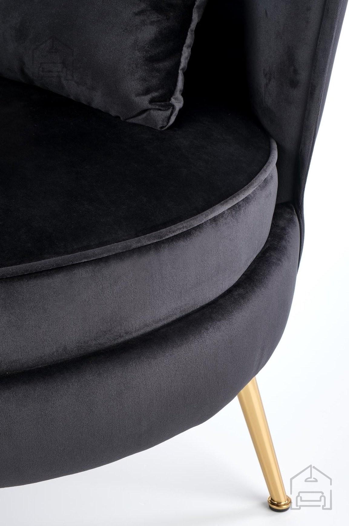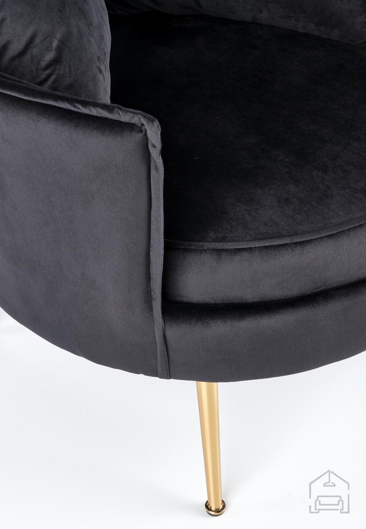 S tem sobnim foteljem Almond obarvajte svoj dom. Izdelan je iz lkovinskega okvirja ter ima udoben oblazinjen sedež, prevlečen z žametom – mehkim materialom, ki ne zahteva veliko vzdrževanja. Oblikovano naslonjalo z zaobljenimi nasloni za roke poudarja značilno obliko fotelja. Retro slog modela dopolnjujeta mehko velurno oblazinjenje in zlati poudarki na nogicah. Debele blazine na sedežu je mogoče preprosto odstraniti, zato je tudi njihova nega zelo preprosta. Z njim lahko opremite dnevno sobo, pisarno ali spalnico ter vsakemu prostoru dodate živahen pridih.