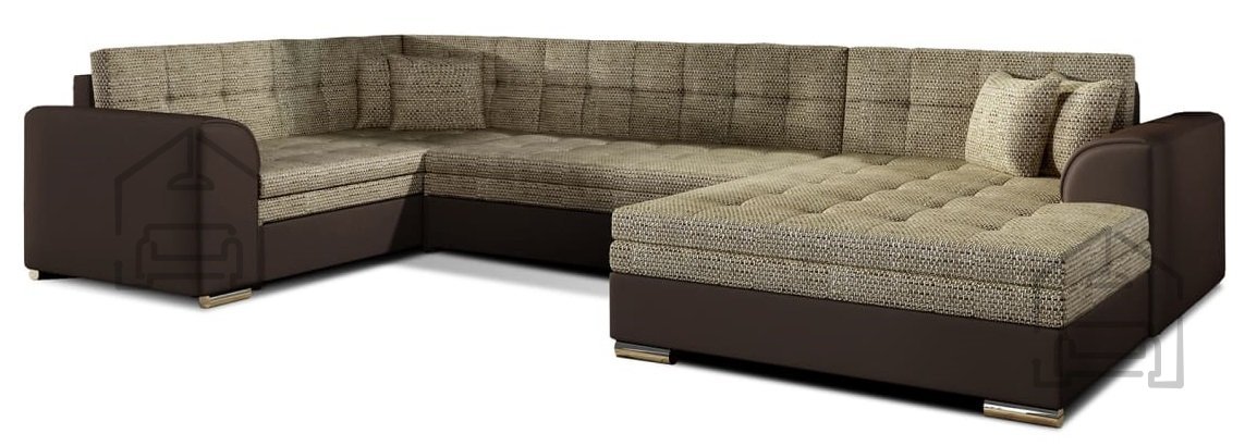 Postavitev: rDimenzije: 3380x780x1890 mm Damario je prostorna, izjemno šik in okusna kotna sedežna garnitura precejšnje velikosti z merami 338 x 189 x 78 cm. Pohištvo v obliki črke U ima udobno, mehko sedišče iz trpežnih valovitih vzmeti in prožne pene T30, ki je odporna na poškodbe, deformacije in vse vrste prask. Poleg tega je naša kotna sedežna garnitura opremljena s funkcijo spanja. Za to namenjena površina, pridobljena zahvaljujoč avtomatskemu in intuitivnemu mehanizmu delfin, je 275x126 cm.