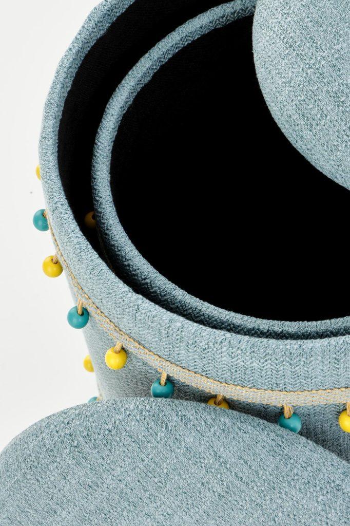 Leseni okvir in kakovostne tkanine zagotavljajo dolgotrajno zanesljivost. Površine se enostavno čistijo z rahlo vlažno krpo ali s sesalnikom z mehko krtačo. Priporočljivo je, da se izogibate agresivnim čistilom in pretiranemu drgnjenju, saj to lahko skrajša življenjsko dobo tkanine. Občasno prezračevanje prostora in izogibanje neposredni sončni svetlobi pa pomagata ohranjati svežino barv.