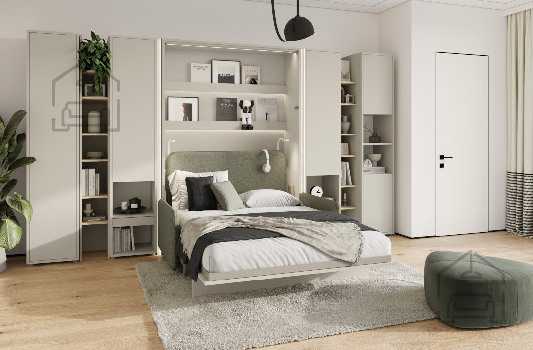 Ni nujno, da je majhna dnevna soba dolgočasna! Vertikalno stensko posteljo BC-01 in BC-12 lahko opremite z izjemno udobno oblazinjeno sedežno garnituro. Spoznajte stensko posteljo s sedežno garnituro BED CONCEPT. Postelja, skrita v garderobni omari, vam bo omogočila, da prostor srečanja s svojimi najdražjimi v nekaj sekundah preuredite v udobno spalnico polne velikosti. Sedežna garnitura je oblikovana v kar petih barvnih različicah – sami se odločite, katera se bolj prilega karakterju vašega interierja.