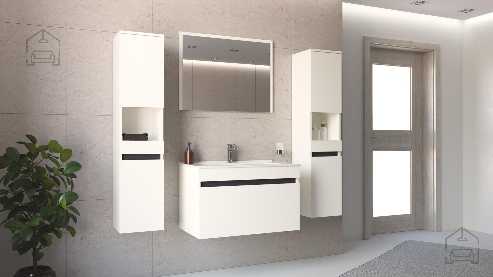 DescriptionMaterila: laminirana iverna plošča, ogledalo Barva: belaMaterial: laminirana iverna plošča Barva: bela Ročaji so v kompletuMaterial: Iverna plošča, LED, ogledalo Barva: artisan hrastMaterial: laminirana iverna plošča Barva: sonoma hrast Ročaji so v kompletu