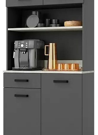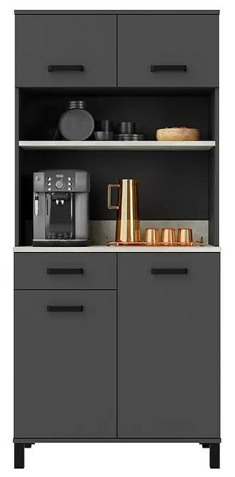 Omara je na voljo v elegantni antracit barvi, ki se enostavno ujema z različnimi slogi notranje opreme. Njen minimalističen videz, poudarjen s črnimi mat ročaji in nogami, ji daje sodoben pridih, ki bo zagotovo pritegnil poglede. Robovi so obdelani z ABS, kar zagotavlja dodatno zaščito pred obrabo ter podaljšuje življenjsko dobo pohištva.