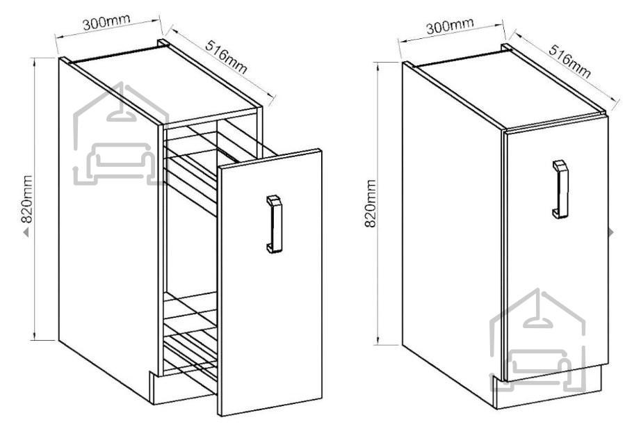 Kuhinjski pult in spodnja letvica nista vključena v ceno.Dimenzije: 300x820x510 mm