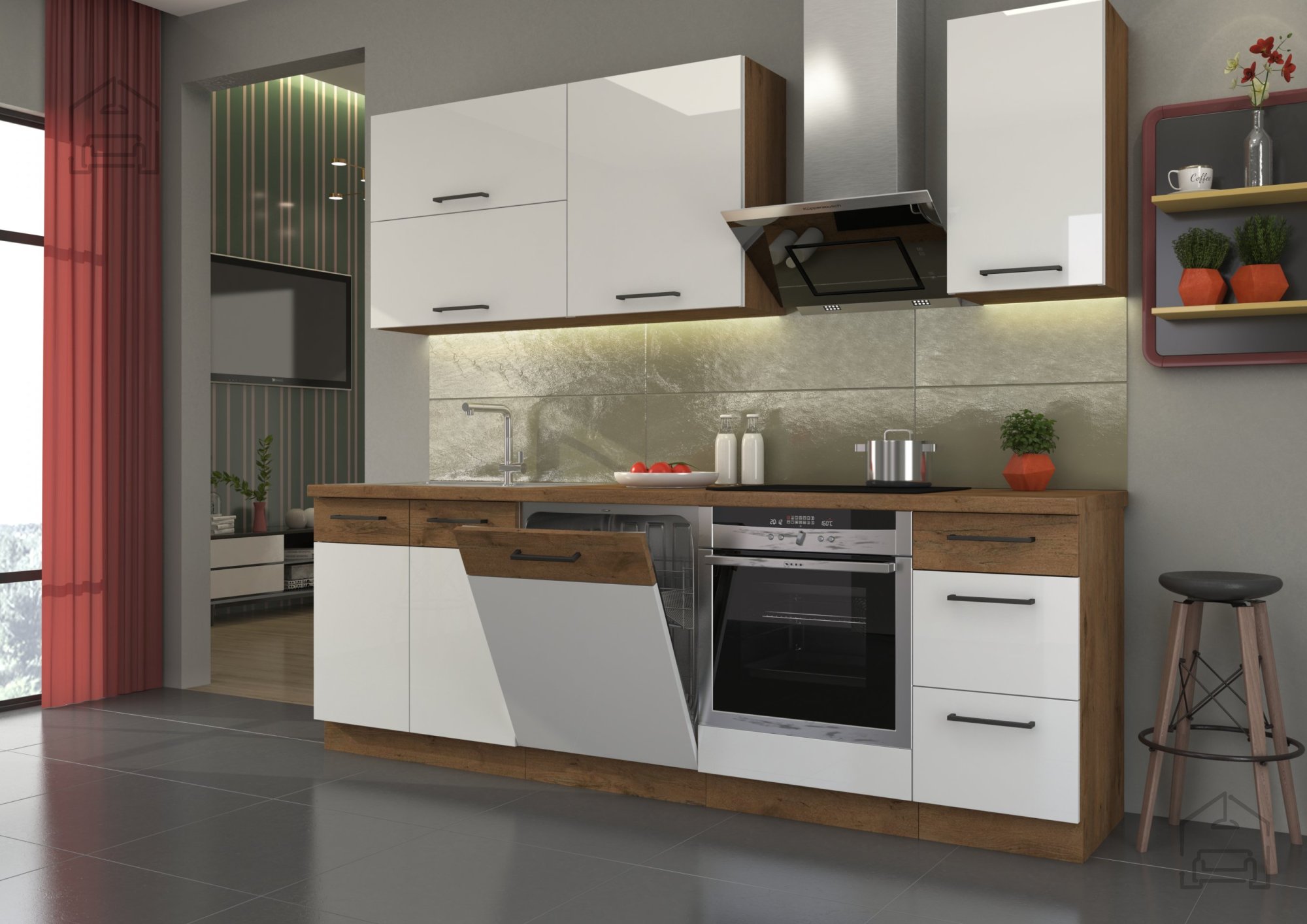 Kuhinjski pult in spodnja letvica nista vključena v ceno. | Material korpusa: Laminirana plošča