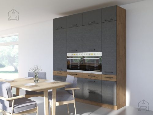 Kuhinjsko pohištvo Grey je odlična izbira za vse, ki sledite modnim trendom. Kuhinjo lahko sestavite po lastni presoji - na izbiro je veliko omaric.Uporaba zelo dobrih materialov, sistem mehkega zapiranja predalov in sistem mehkega zapiranja front je le nekaj prednosti te moderne garniture.Sivo kuhinjsko pohištvo je kolekcija modularnega pohištva, ki ga lahko uporabimo za ureditev katere koli kuhinje. Zelo velika izbira standardnih omar, kotnih omar, predalnikov, tovornih omar, polic vam daje veliko možnosti.To je sodobno kuhinjsko pohištvo iz visokokakovostnih materialov, primernih za uporabo v kuhinji. Laminirana plošča s povečano odpornostjo na temperaturo, praske in vlago ter trpežna, debela zgornja površina bosta poskrbela za udobje pri pripravi obrokov.