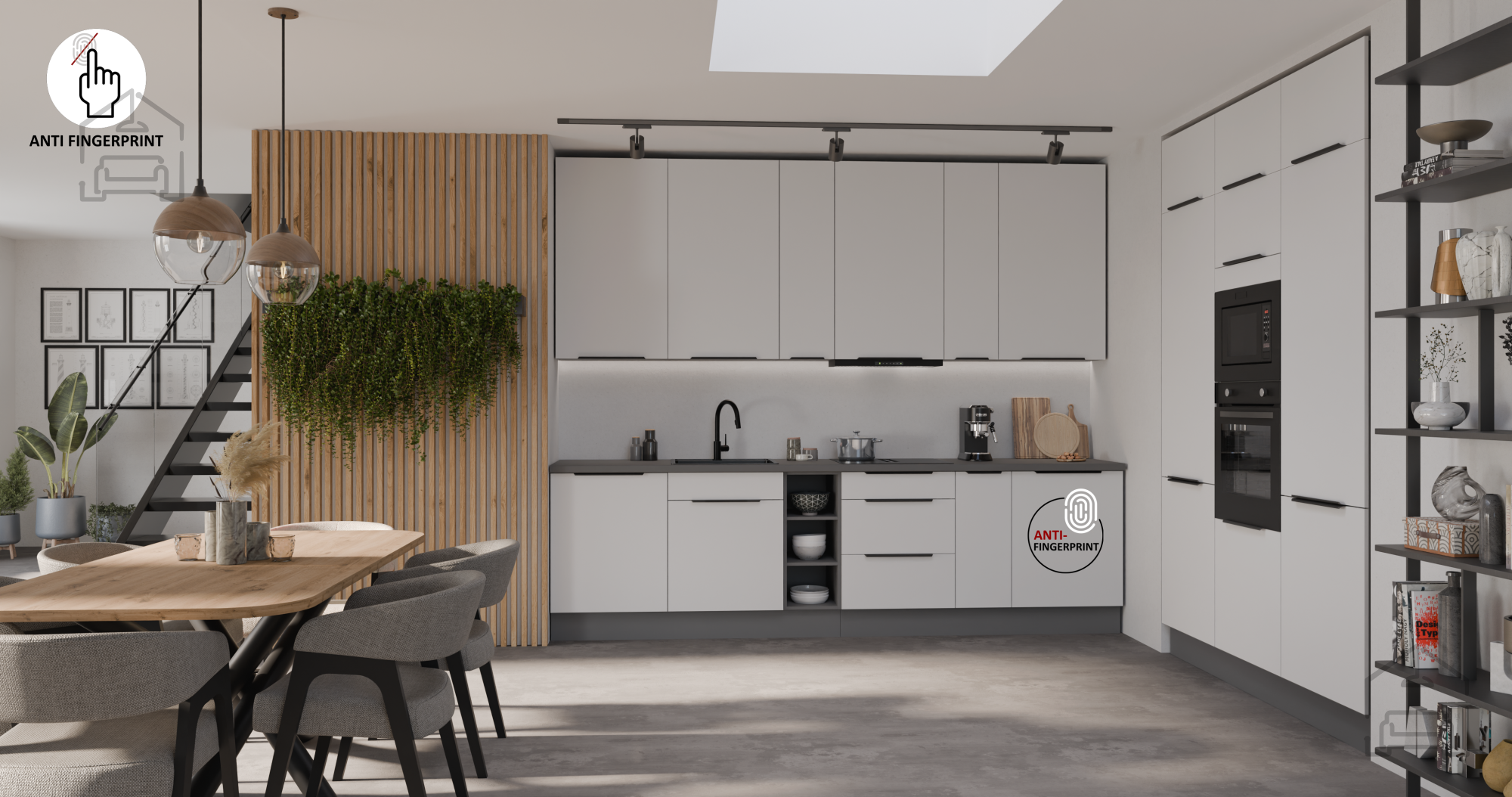• Sodoben dizajn: Bleščeče bele fronte v kombinaciji s sivo barvo korpusa prinašajo svežino in svetlobo v kuhinjo.