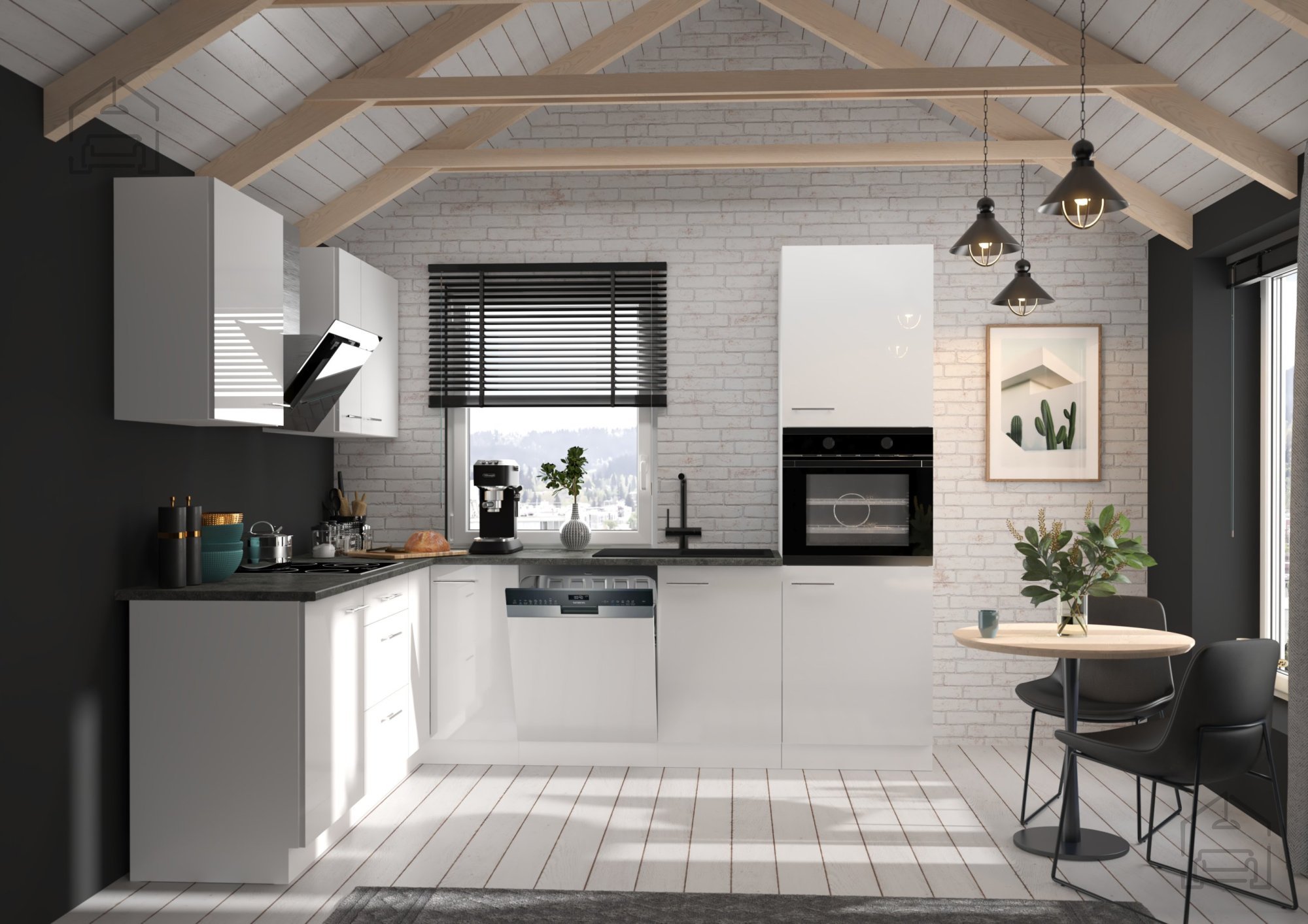 DescriptionMaterial: Laminirana plošča Barva korpusa in fronta: bela / bela sijaj Za brezplačni izris in ponudbo za kuhinjo po meri nas kontaktirajte