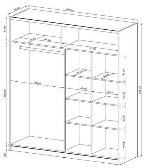 | Content | Material: Iveral Barva: Bela+bela lacobel+grafitDimenzije: 2000x2140x630 mm Prednosti: - ABS robovi