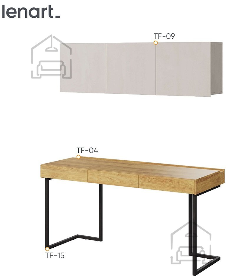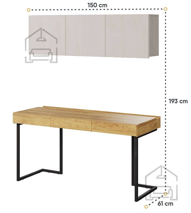 Pisalna miza z visečo omarico za mladostniško sobo olajša organizacijo študijskega prostora. Stabilna mizna plošča vam omogoča udobno branje knjig in pisanje domačih nalog. Trije pod njim nameščeni predali omogočajo shranjevanje učnih pripomočkov, ki naj bodo vedno pri roki. Stenska omarica s trojnimi vrati ima podobno funkcijo | Material: Iveral