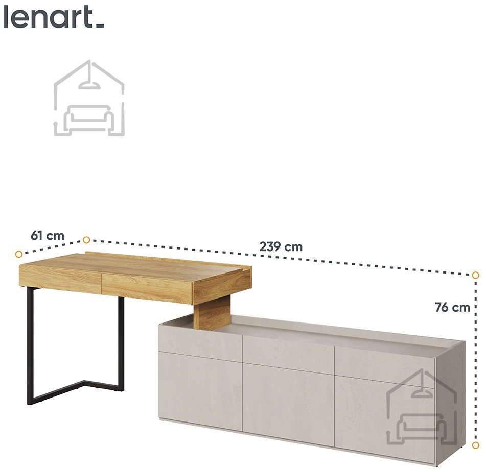 Barva: svileni flou/naravni hikori/surovo jekloDimenzije: 2390x950x610 mm Pisalna miza z omarico za najstnika je sodobna in elegantna rešitev, ki se bo odlično prilegala notranjosti najstniške sobe. Pohištvo ima poleg estetskih vrednosti tudi številne praktične prednosti. Z lahkoto jih lahko postavite skoraj kamor koli v prostoru. Velika količina prostora za shranjevanje pomaga ohranjati stvari pospravljene. Pisalna miza z omaro za mladostniško sobo je rešitev, ki združuje udobje, stil in funkcionalnost.
