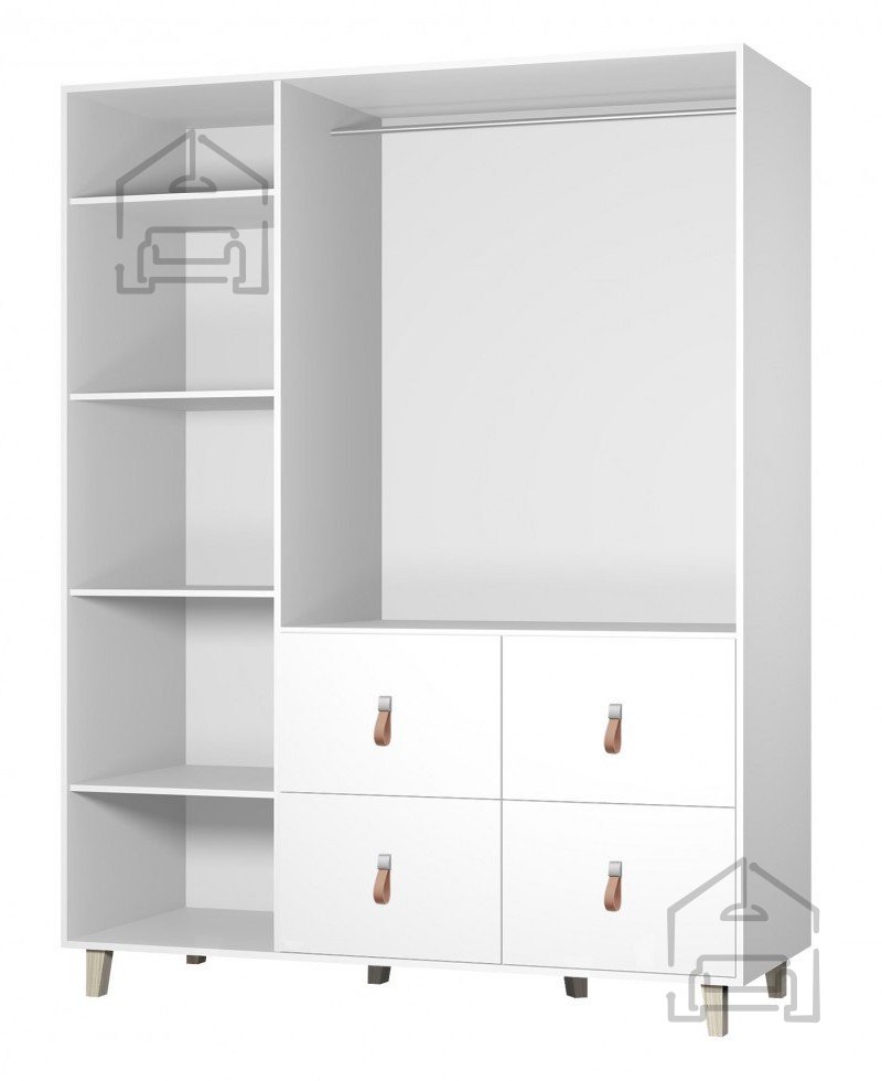 Predstavljamo vam omara Figo 4S3D 19, elegantno in praktično pohištvo, ki je idealno za otroške in mladinske sobe. Z dimenzijami 153x55x202 cm in izdelana iz laminirane plošče 16 mm, ta omara združuje sodoben dizajn in trajnost. Njena bela barva prinaša svetlost in svežino v vsak prostor, medtem ko usnjeni ročaji dodajajo pridih elegance.