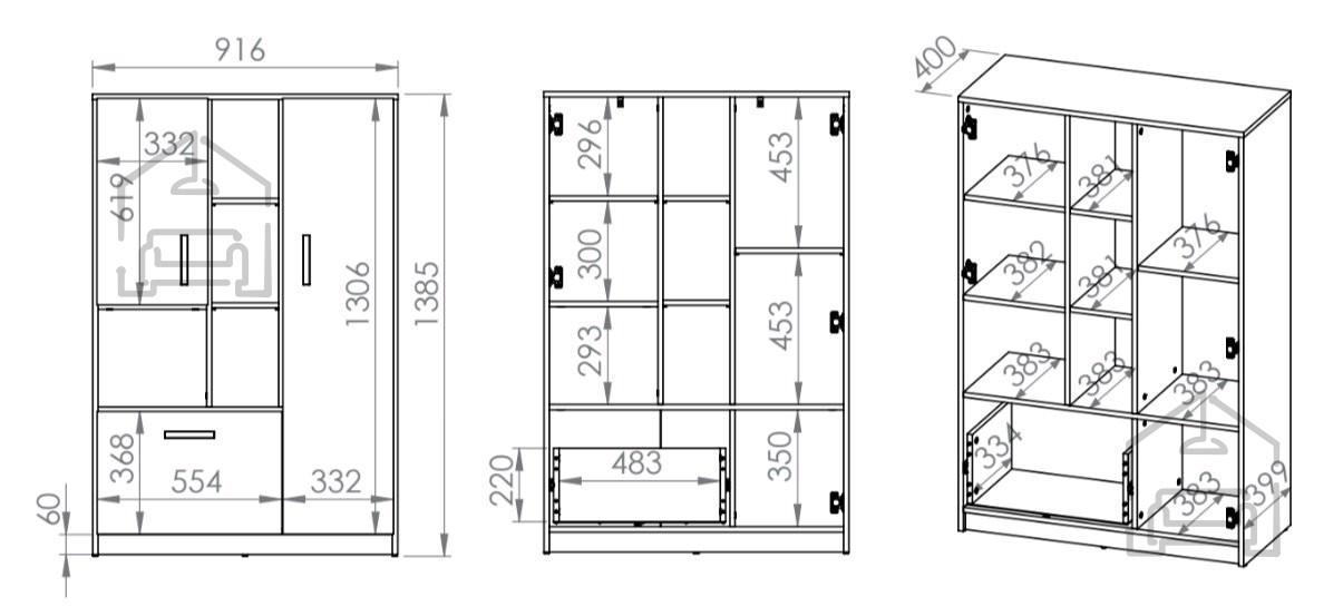 Barva: Bukev fiord, bela, siva.Dimenzije: 920x1410x400 mm Komplet je sestavljen iz 23 elementov: