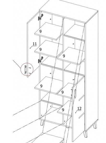 Barva: Bukev fiord, bela, siva.Dimenzije: 800x1990x550 mm Komplet je sestavljen iz 23 elementov: