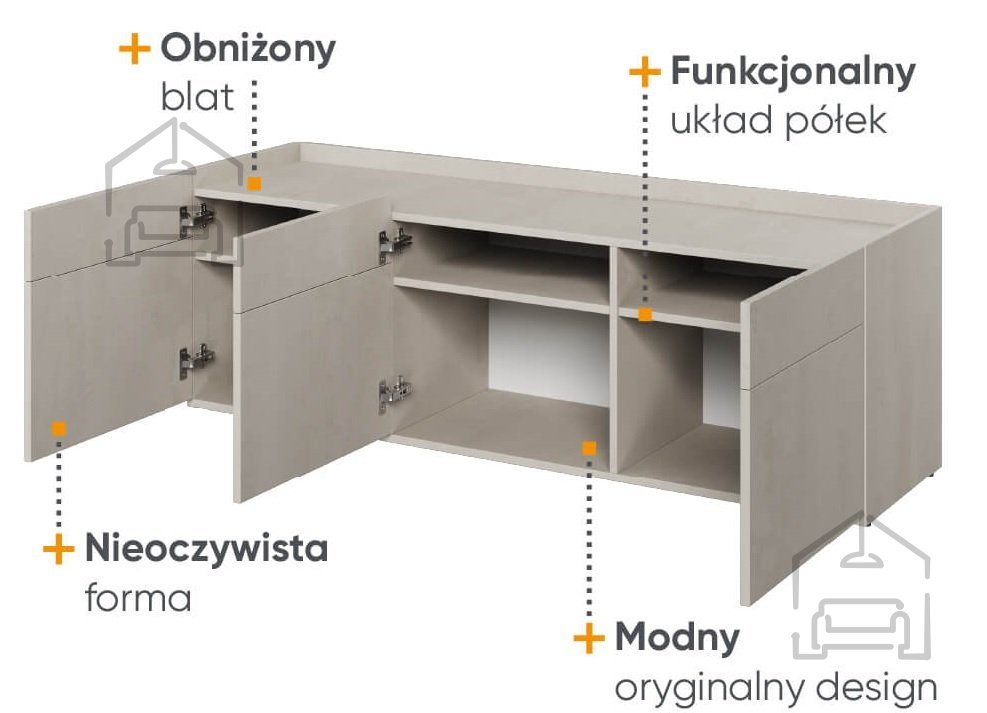 Moderna omara za mladinsko sobo s tremi vrati. V notranjosti je funkcionalna razporeditev polic, ki bo olajšala vzdrževanje reda. Pohištvo je opremljeno s spuščenim vrhom, zahvaljujoč kateremu so predmeti, izpostavljeni na njegovi površini, zaščiteni pred padcem. Uspešno jo lahko uredimo na primer kot TV omaro. Kolekcija TEEN FLEX je brezčasen in izjemno izviren nabor oblik, namenjen dolgotrajni uporabi. Dizajnerski slog pohištva je posledica modnih, izvirnih barv, neočitne oblike in modularnosti. Impresivna osvetlitev v kompletu bo zagotovo vnesla energijo v mladostniško sobo. | Material: Iveral