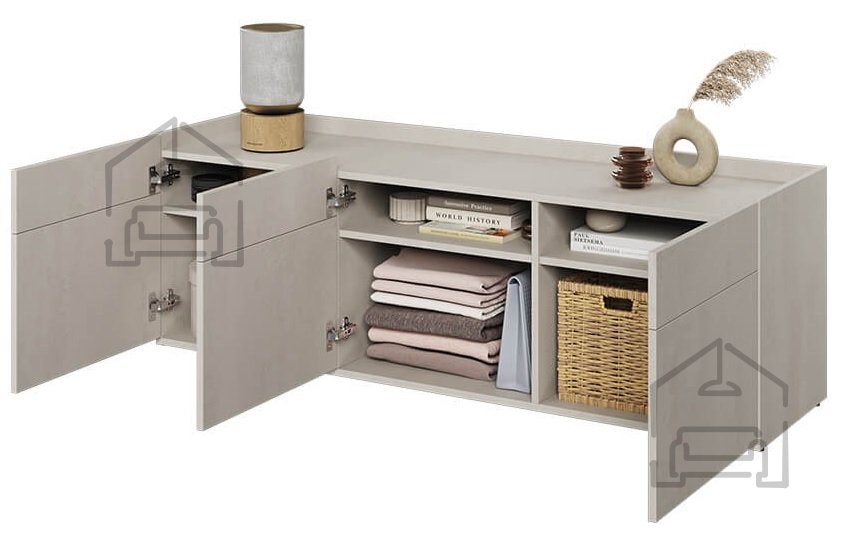 Barva: svilena flouDimenzije: 1500x520x420 mm Omarica za mladinsko sobo TEEN FLEX je odlična rešitev za ljudi, ki želijo notranjost urediti v dizajnerskem in brezčasnem stilu.