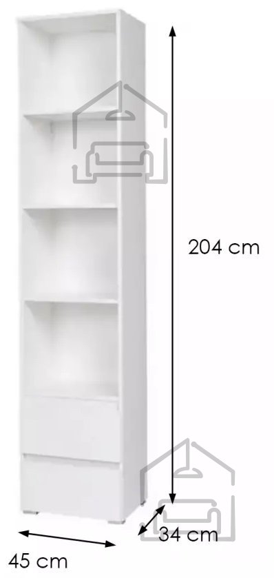 Regal Cosmo C01 se ponaša z dimenzijami 45x34x204 cm, kar omogoča optimalno uporabo prostora, ne da bi zavzel preveč prostora v sobi. Izdelan je iz visokokakovostnih materialov, ki zagotavljajo trdnost in dolgo življenjsko dobo. Korpus in fronte regala so izdelani iz laminirane plošče debeline 16 mm, kar zagotavlja odpornost na praske in druge mehanske poškodbe. Robovi so obdelani z ABS, kar povečuje vzdržljivost in zagotavlja estetsko dovršen videz.