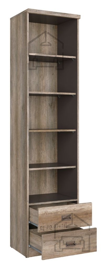 Barva: Hrast Canyon Monument/sivi WolframDimenzije: 500x2055x400 mm Regal Malcolm je idealen za organizacijo in razstavljanje šolskih knjig v otroški sobi. S svojimi prostornimi predali in policami ponuja veliko prostora za urejanje in shranjevanje.