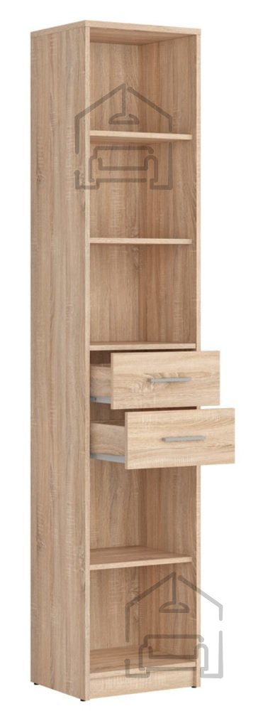 • Poleg odprtih predelkov ima omara tudi dva predala, ki nudita zasebnost in omogočata shranjevanje manjših predmetov in drobnarij.
