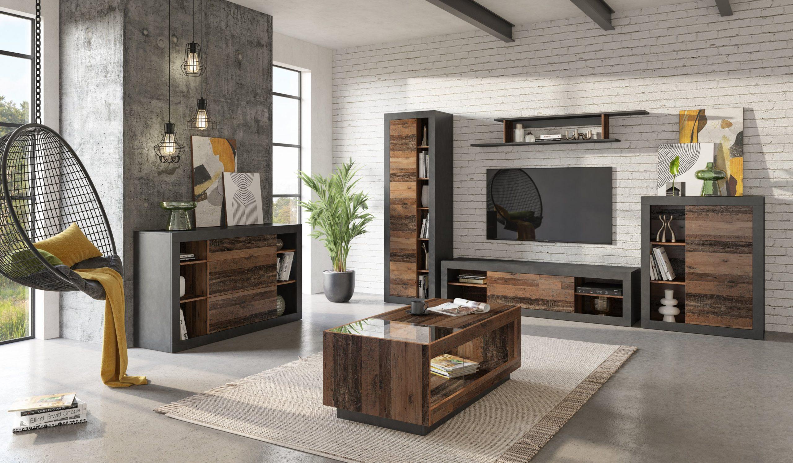 Dimenzije: 1650x265x220 mm Pohištvo za dnevno sobo Zena je sodoben predlog proizvajalca Helvetia, ki ustvarja vizualno zelo privlačno notranjost. Premišljena izbira temnejših barv doda celotni kolekciji karakter in ustvari samostojno notranjo podobo. Pohištvo je opremljeno s številnimi policami, zaradi katerih bo vsak predmet imel svoje stalno mesto. Močna struktura iz visokokakovostnih materialov zagotavlja dolgotrajno vzdržljivost ter dolgo življensko dobo.
