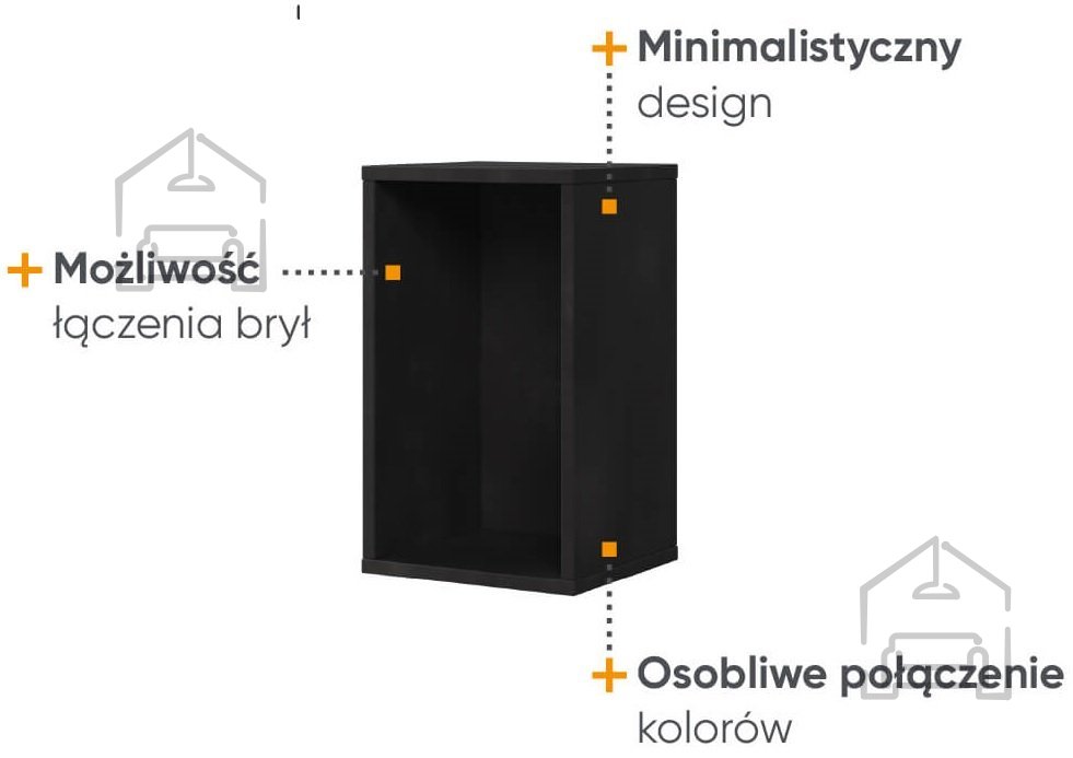 Črna polica za mladostniško sobo bo popolna, če v ospredje radi postavljate okraske, fotografije in spominke. Zahvaljujoč njihovi kompaktni obliki lahko uporabite več takih polic za ustvarjanje lastne kompozicije na steni ali jih uporabite pri sestavljanju pohištvenega kompleta. Majhna polica izgleda odlično obešena nad drugimi kosi pohištva TEEN FLEX. Kolekcija je bila zasnovana za sobe najstnikov, ki ljubijo izviren stil. Odlikuje ga edinstvena barvna kombinacija, minimalizem in dizajnerski značaj. | Ležalna površina: 80x190 cm