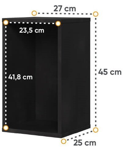 Barva: surovega jeklaDimenzije: 270x450x250 mm Črna polica za najstniško sobo je odlična možnost za ljudi, ki radi v ospredje postavijo svoje najljubše okraske, spominke ali knjige.
