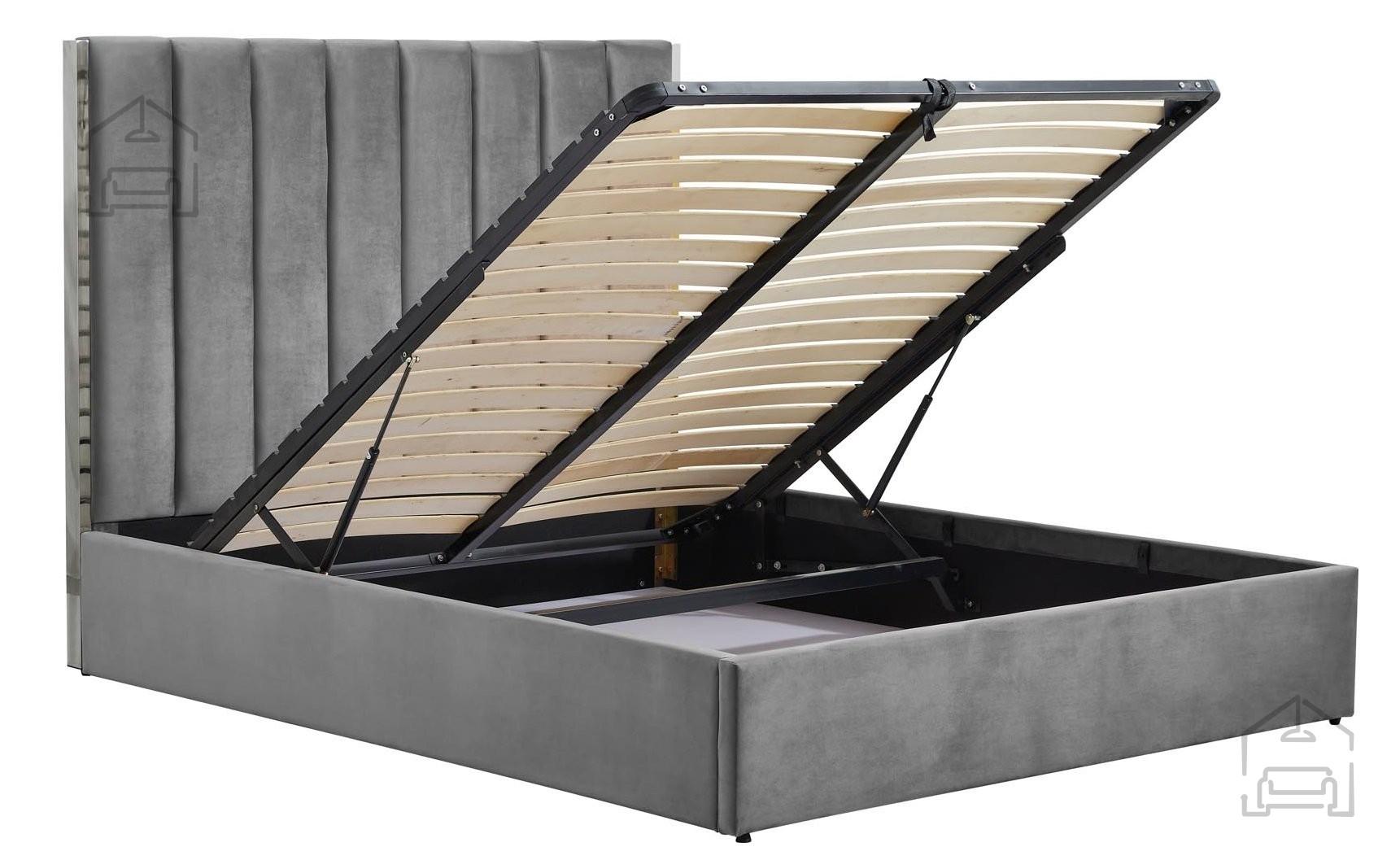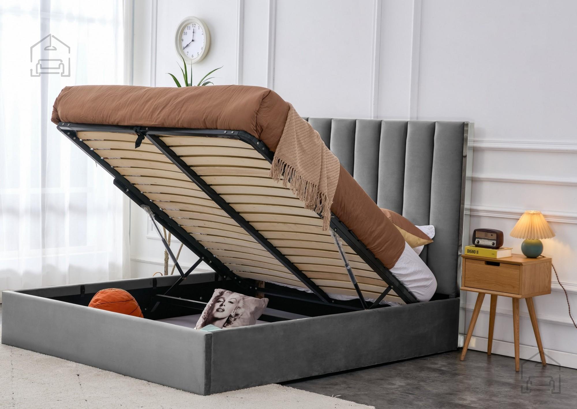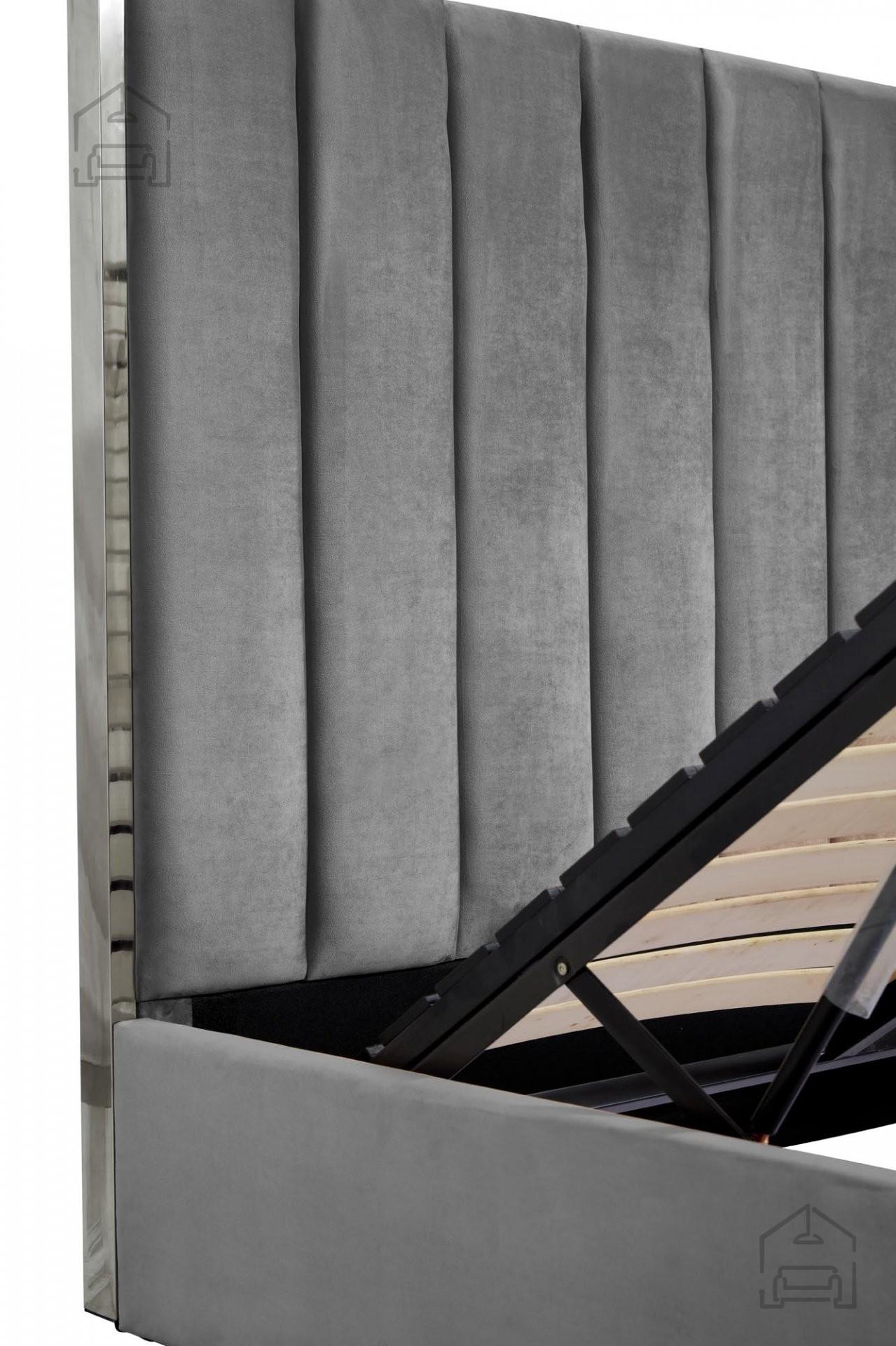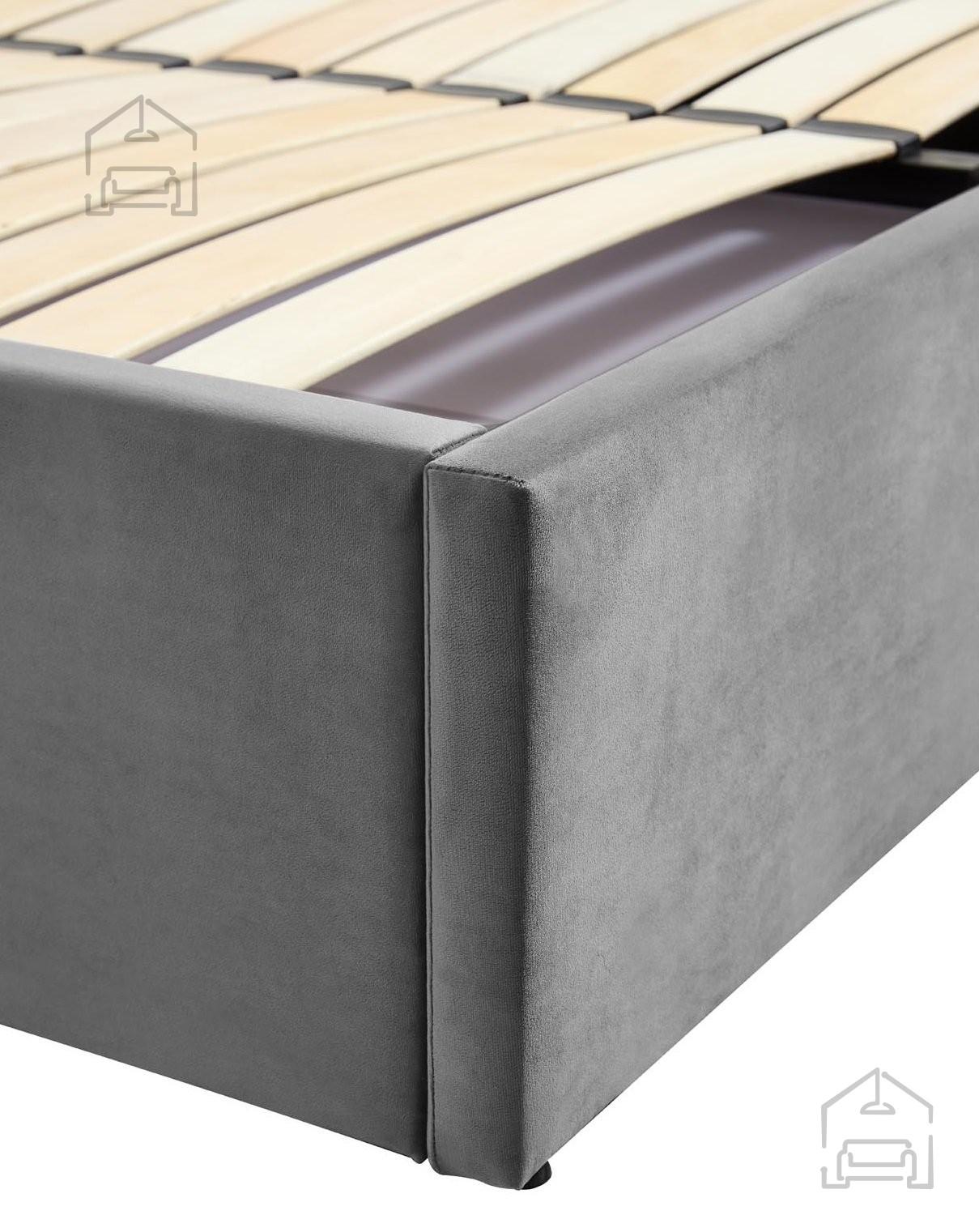Nosilnost: 100 kgDimenzije: 1710x330x2140 mm Spalnica je ena najpomembnejših sob v hiši. V njem počivamo in se sprostimo, zato je izbira prave postelje, ki je hkrati praktična in elegantna, pomembno vprašanje. Odlična izbira bo postelja Palazzo - 160x200 cm, saj jo odlikujeta estetski dizajn in funkcionalnost. Oblazinjena v žametno blago z veličastnim visokim naslonom za glavo navdušuje s svojo prisotnostjo. Poleg tega je postelja Palazzo, opremljena s predalom, ki bo uspešno sprejel posteljnino in druge tekstilije. Elegantni navpični šivi, ki krasijo vzglavje, odlično poudarijo sodoben slog postelje.