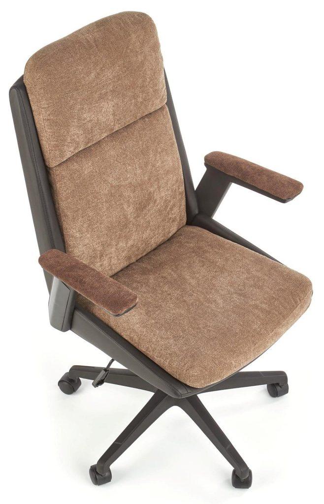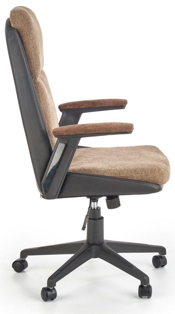 | Content | Material: tkanina, eko usnje Barva: rjava/črna Dimenzije: 670x1070x620 mm Moderen pisarniški stol z oblazinjenjem iz eko usnja v črni barvi. Visok naslon za hrbet, nasloni za roke ter nastavljiva višina poskrbijo za udobno sedenje. | Material: Iveral