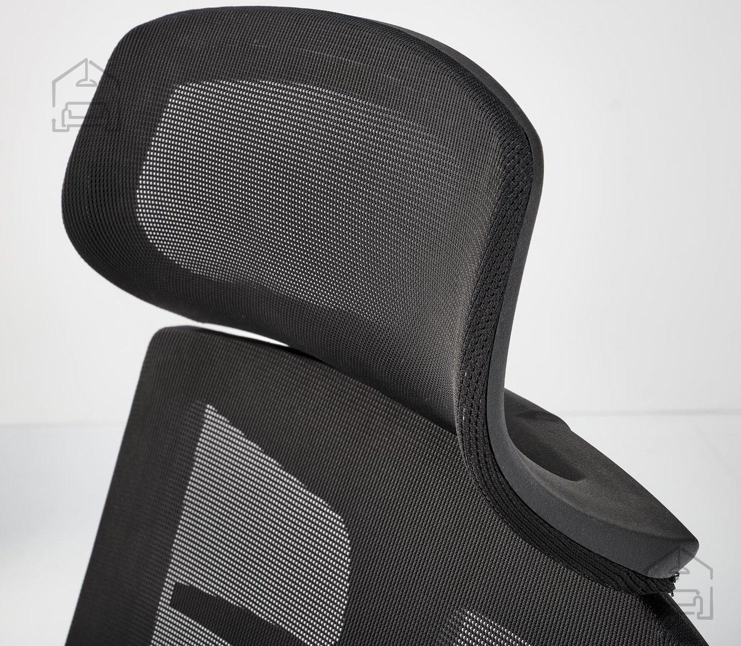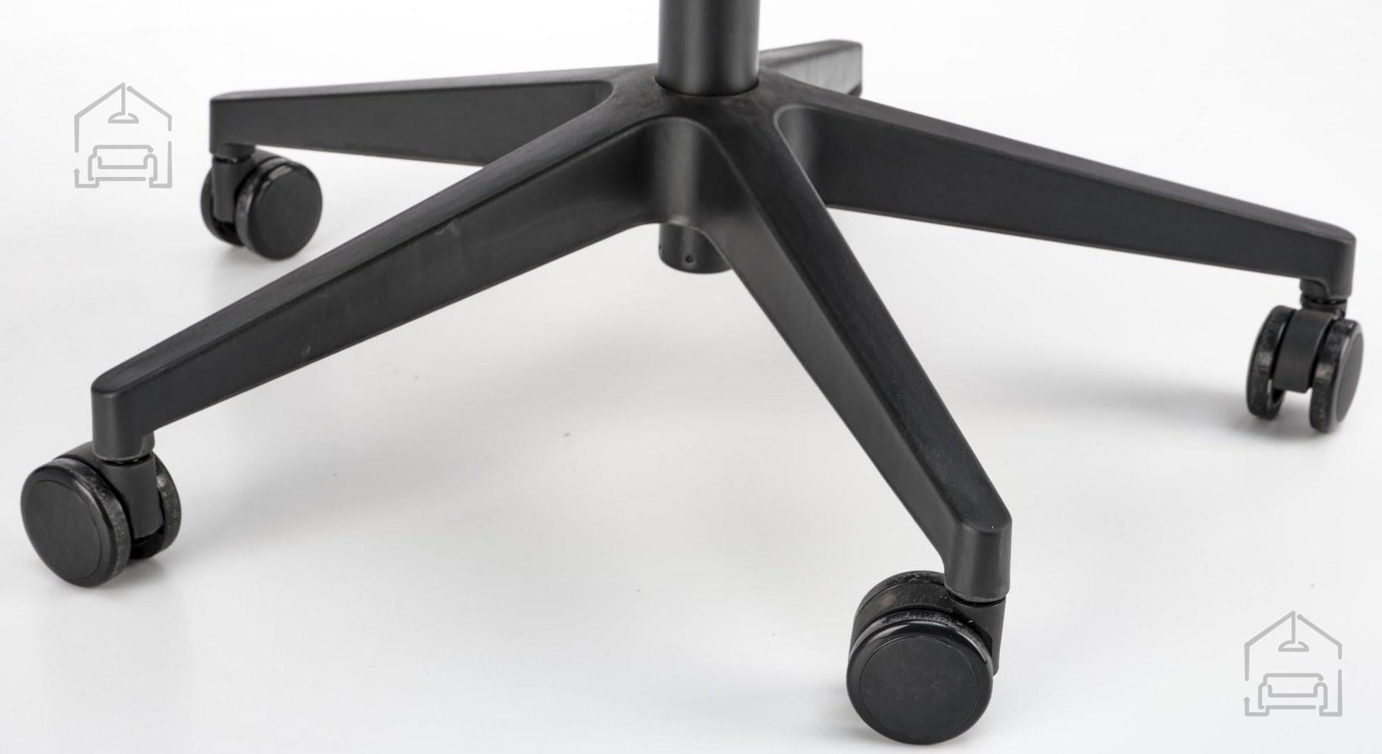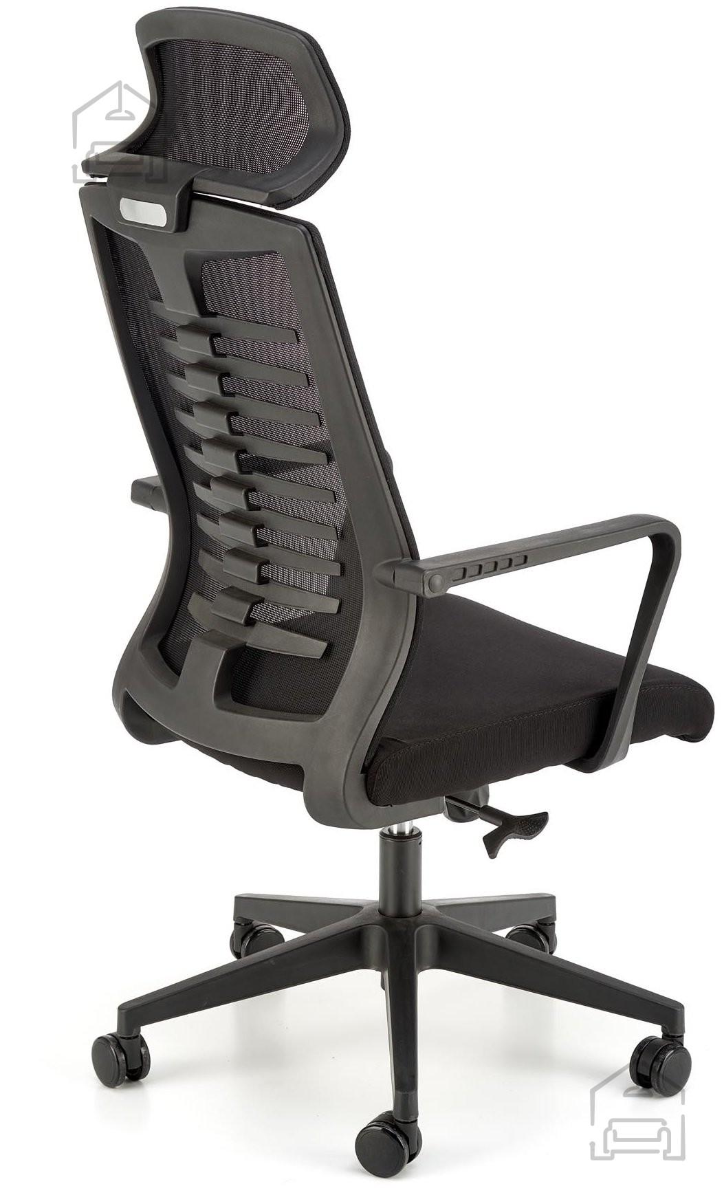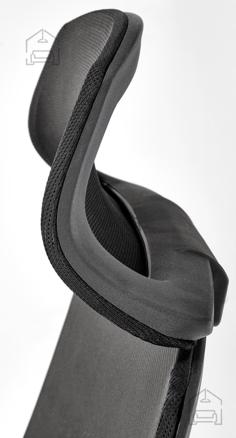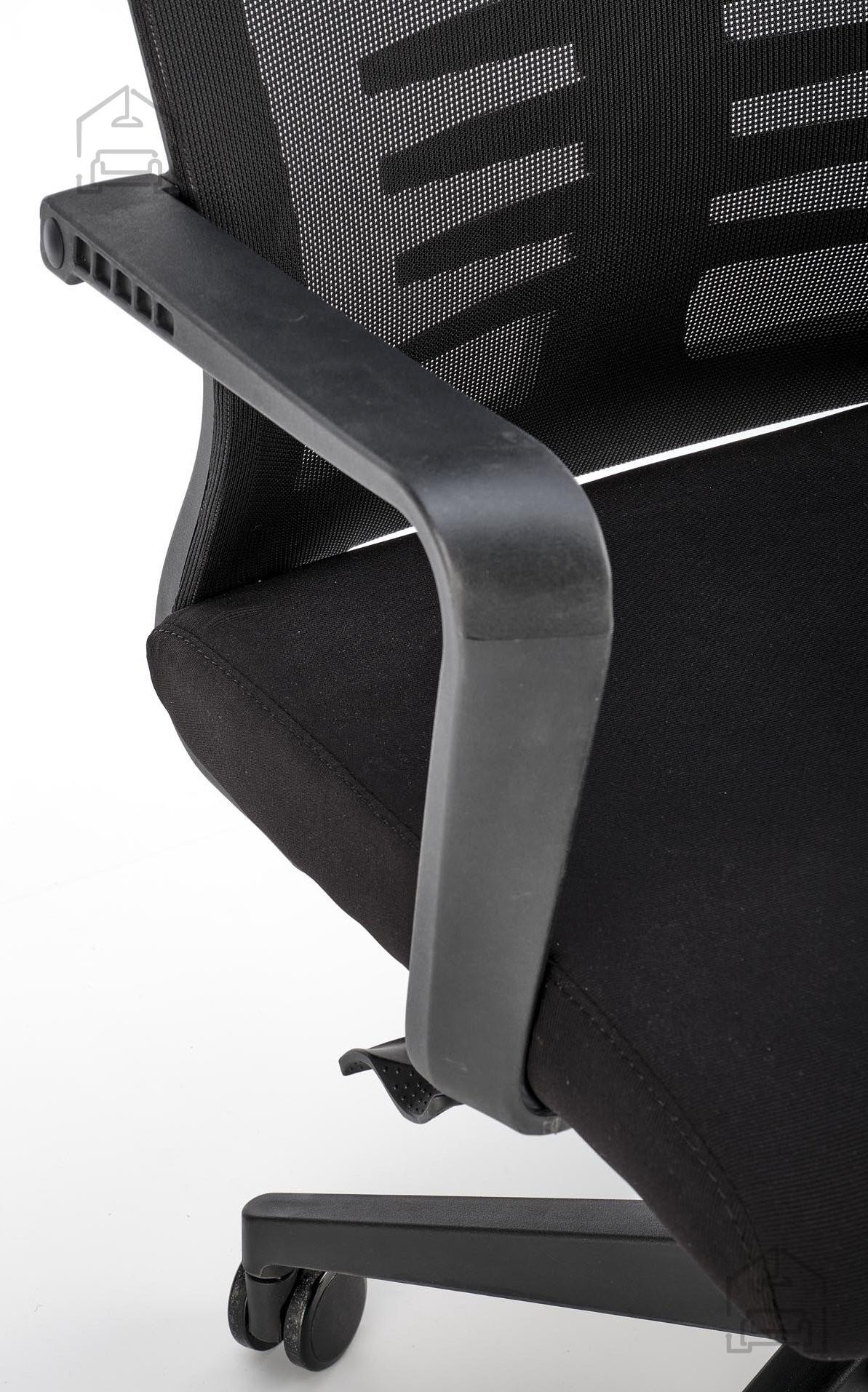 Stol je oblazinjen v kombinaciji tkanine in mreže v nevtralni črni izvedbi. Ima naslon za glavo, plastične naslone za roke in je zaključena s črno rozeto s plastičnimi kolesi. | Material: Iveral