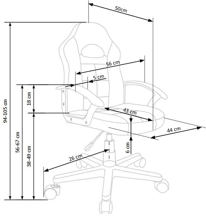 Barva: črna/rdeča Nosilnost: 100 kg Dimenzije: 560x940x500 mm Otroški pisarniški stol v dveh barvnih različicah je zasnovan s TITL mehanizemom, ki bo poskrbel za udobno sedenje. | Material: Iveral