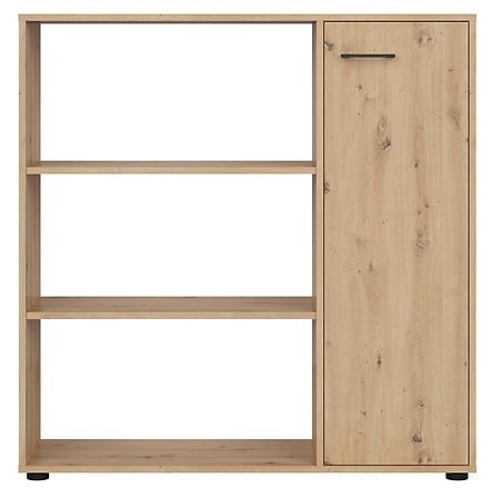Sodoben pisarniški regal Space office je izjemno praktičen kos pohištva z razdeljenim dizajnom, ki vključuje tri odprte police in tri police s vrati. Ta zasnova omogoča shranjevanje izbranih elementov na vidnem mestu, medtem ko druge lahko skrijete pred pogledom. Regal je vsestranski in primeren za različne prostore, vključno s kuhinjo, pisarno ali predsobo.