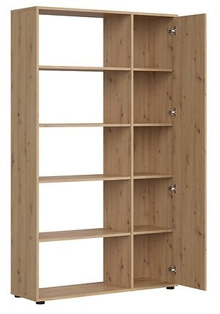 Regal ima 1 vrata in pet prekatov, kar omogoča organizirano shranjevanje različnih predmetov, dokumentov ali dekorativnih elementov.