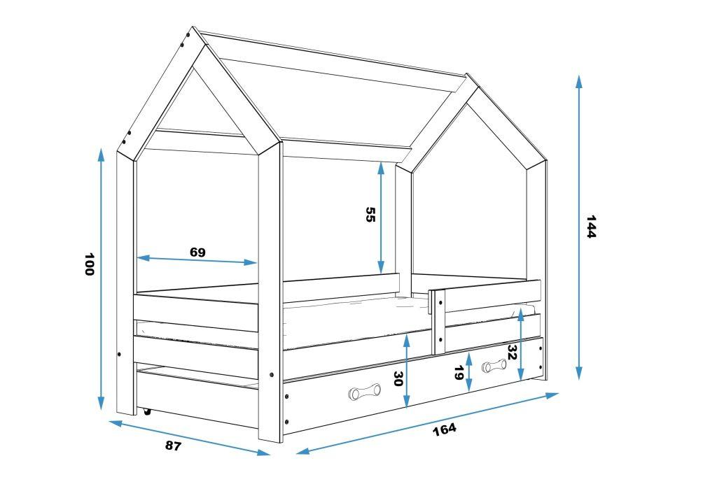 Sodobna otroška postelja z dodatnim ležiščem je namenjena fantom in deklicam. Otroška postelja je narejena tako, da združuje funkcionalnost, modernost in predvsem kakovost in varnost za vašega otroka, ker ima močen okvir iz bora. Praktične dimenzije zagotavljajo, da postelja ne zasede veliko prostora, zato je več prostora za igranje ali učenje. Otroška postelja je narejena iz borovega lesa. Postelja ima prostor za shranjevanje v obliki dveh predalov. | Ležalna površina: 75x180 cm