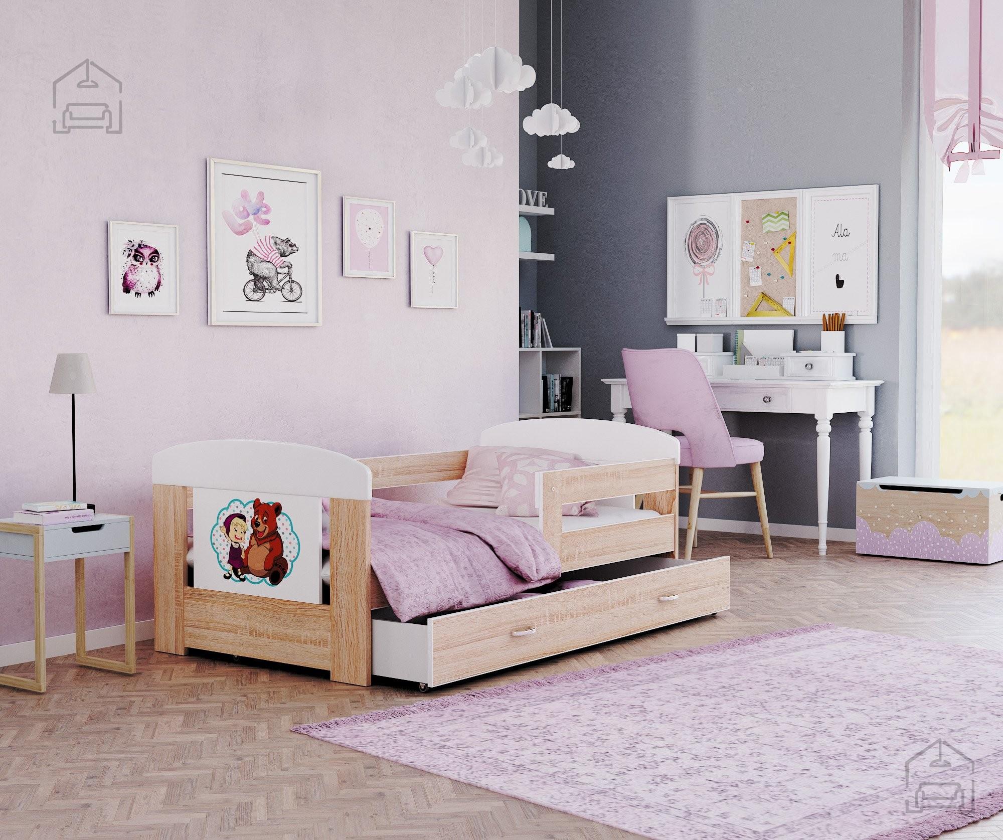 Dimenzije izdelka 85x163x63 cm zagotavljajo dovolj prostora za udoben spanec vašega otroka. Postelja je izdelana iz kakovostnega MDF materiala, ki je znan po svoji trdnosti in trajnosti. Na voljo je v več barvnih različicah: siva, svetlo modra, svetlo roza, zelena in Sonoma, kar omogoča enostavno usklajevanje s preostalim pohištvom v sobi.
