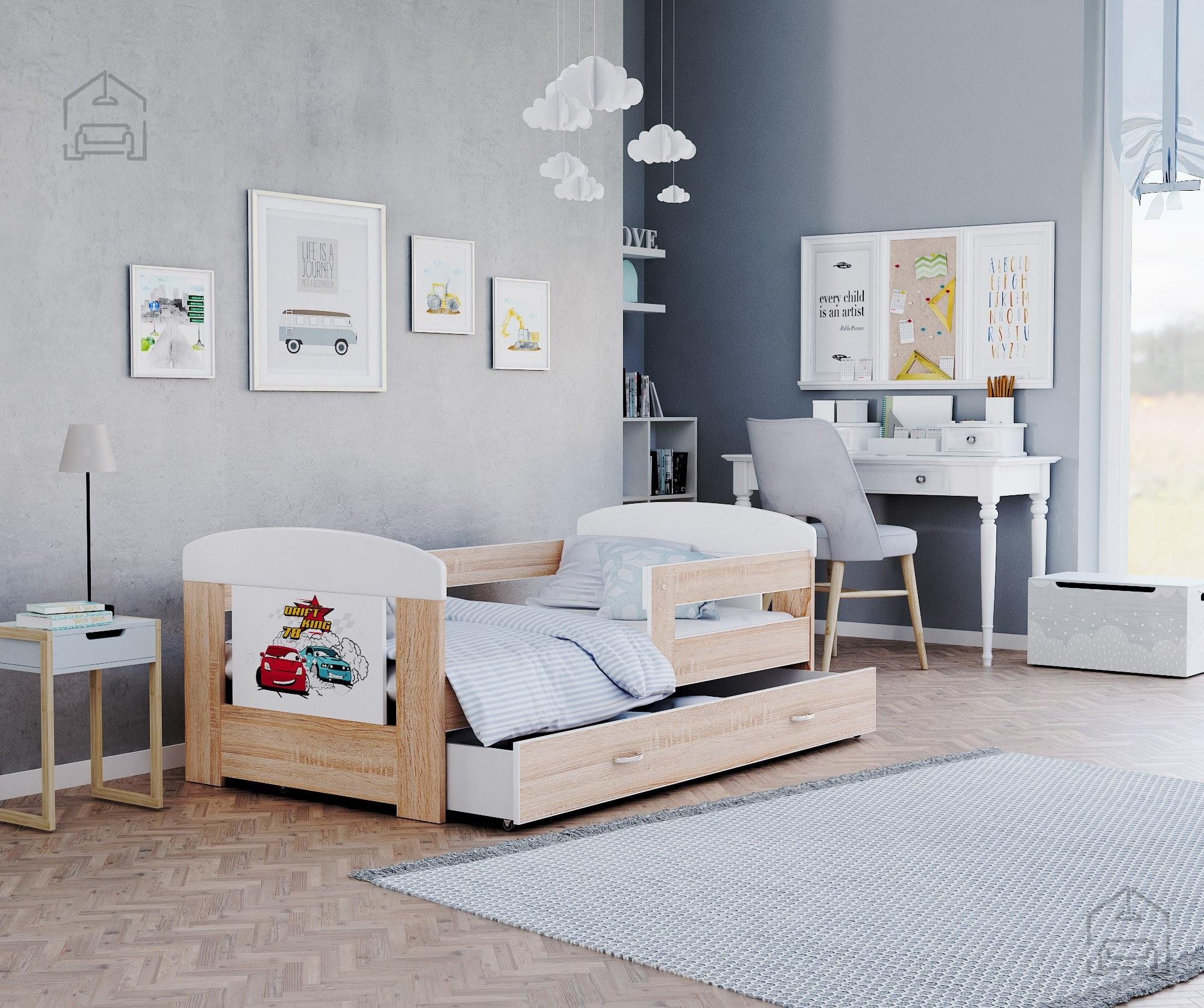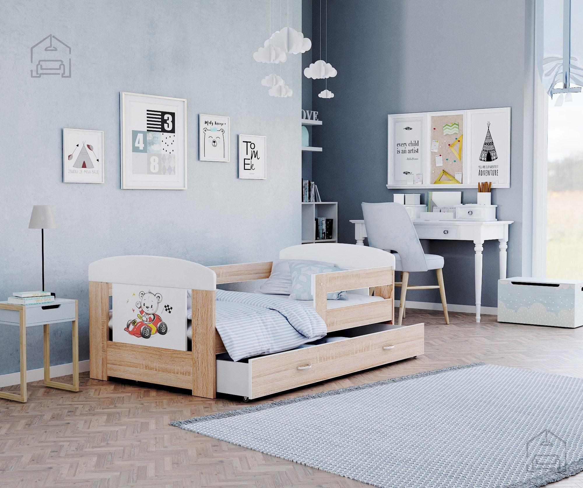 Otroška postelja Lucky je izjemno priljubljen izbor med otroškimi posteljami iz več razlogov. Ne le zaradi zelo privlačne cene, temveč tudi zaradi tega, ker je v komplet vključeno vse, kar vaš otrok potrebuje za dober spanec. Poleg postelje sta v set namreč vključena tudi posteljni pod in ležišče iz pene (7 cm debeline). Da boste zadovoljni tudi vi, je tu še velik predal za shranjevanje posteljnine ali česar koli drugega. In za popolno brezskrbnost staršev je tu še varovalna ograja, ki bo preprečila morebiten padec vašega otroka med spanjem. S posteljo Lucky boste privarčevali pri času in denarju.