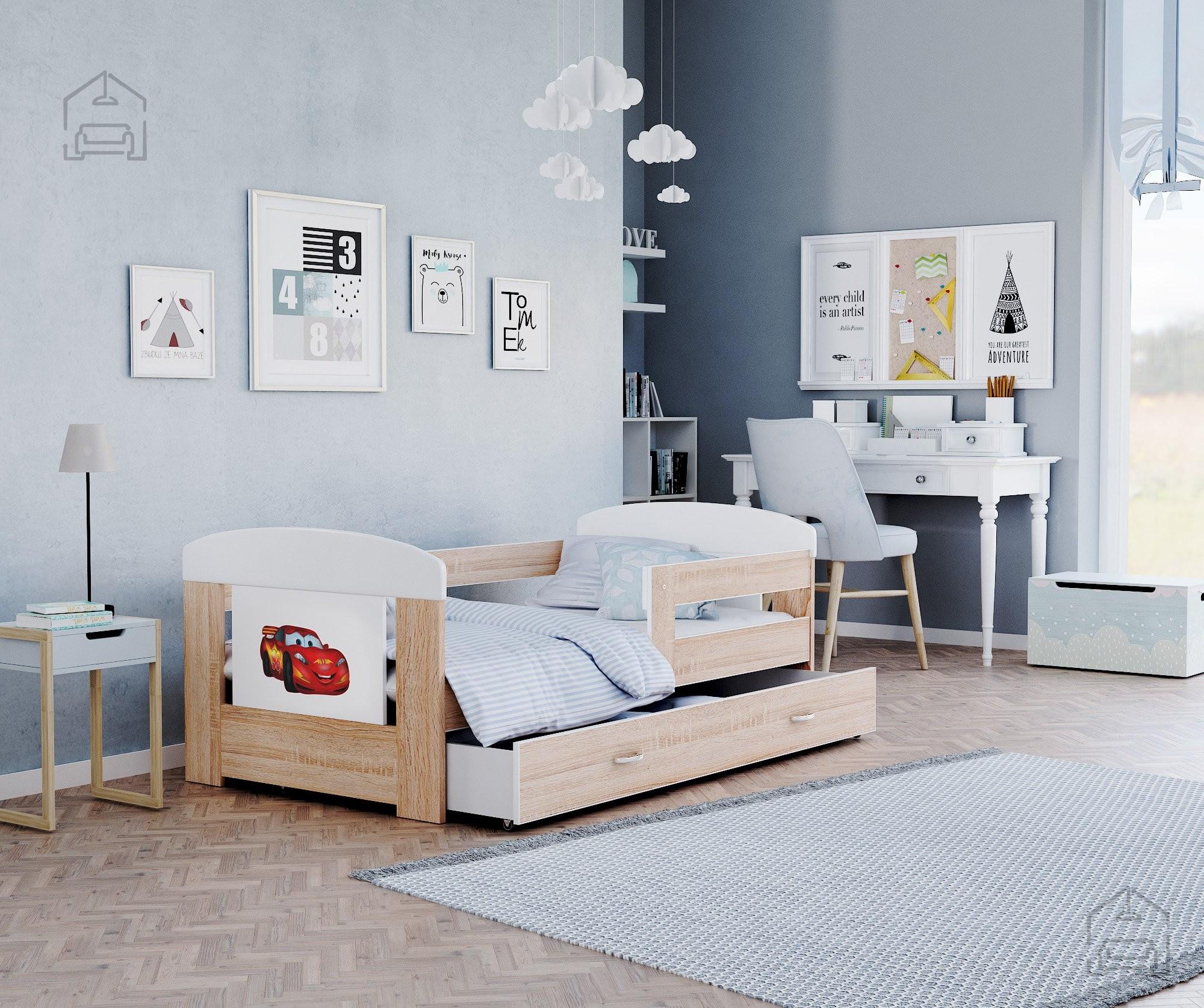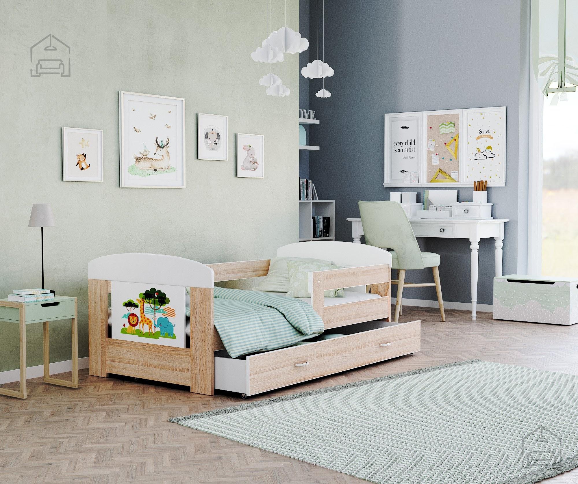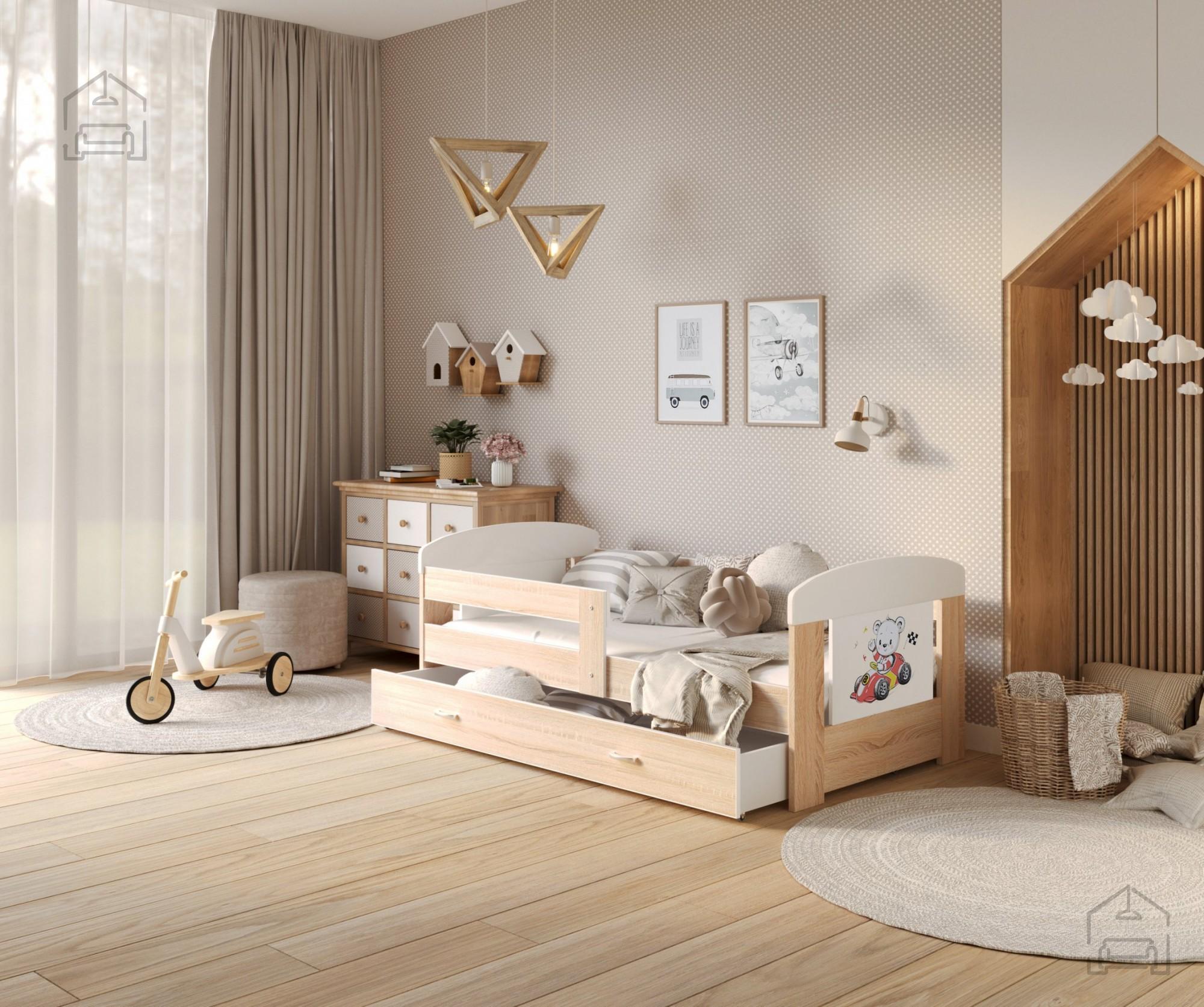 Postelja je narejena tako, da združuje funkcionalnost, modernost in predvsem kakovost. Otroška postelja s predalom za posteljnino in poslikavo. | Material korpusa: Laminirana plošča
