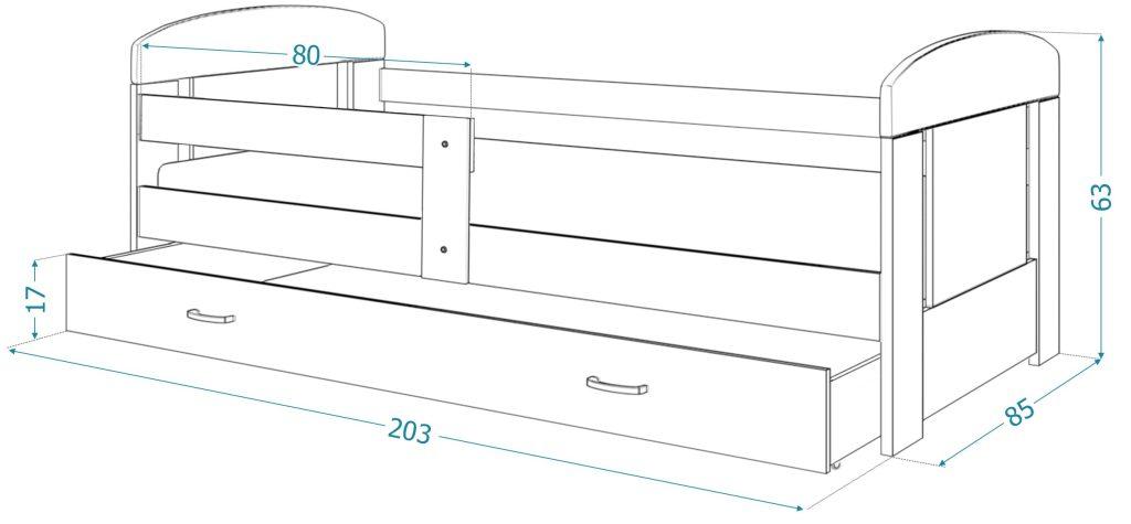 V kompletu: Posteljni pod, ležišče iz pene 7 cmDimenzije: 880x630x2070 mm Postelja je narejena tako, da združuje funkcionalnost, modernost in predvsem kakovost. Otroška postelja s predalom za posteljnino. | Material: laminirana plošča