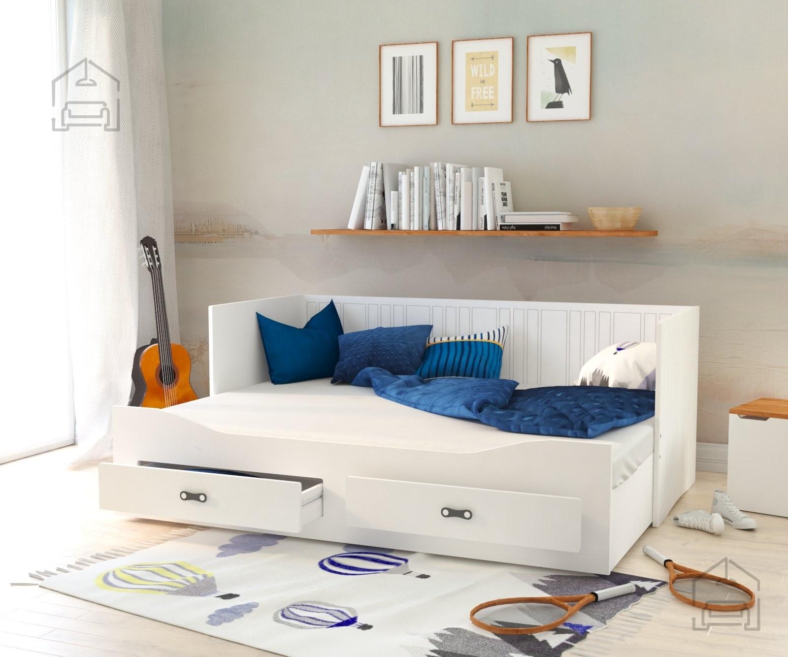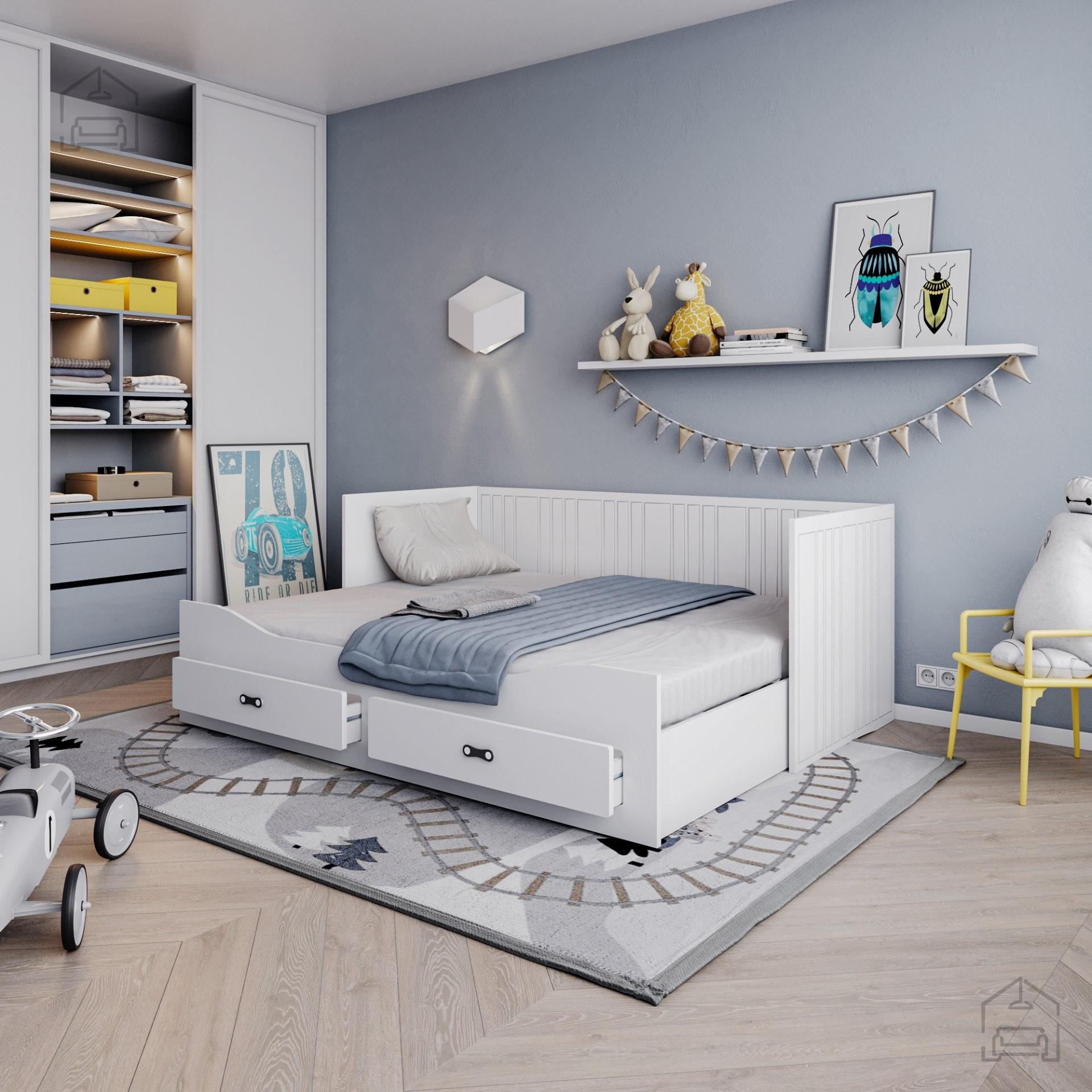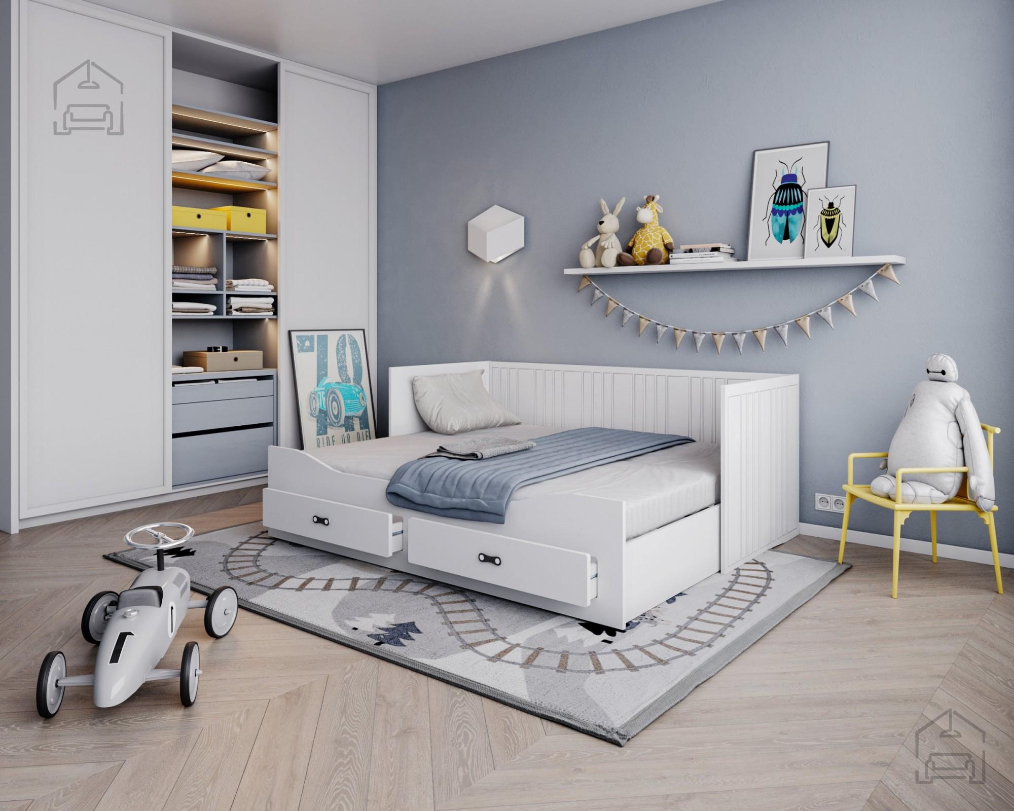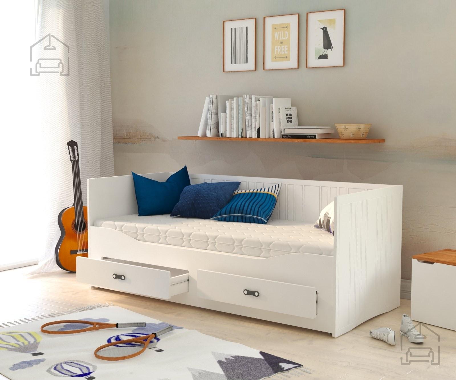 Sodobna otroška postelja z dodatnim ležiščem je namenjena fantom in deklicam. Otroška postelja je narejena tako, da združuje funkcionalnost, modernost in predvsem kakovost in varnost za vašega otroka, ker ima močen okvir iz bora. Praktične dimenzije zagotavljajo, da postelja ne zasede veliko prostora, zato je več prostora za igranje ali učenje. Otroška postelja je narejena iz borovega lesa. Postelja ima prostor za shranjevanje v obliki dveh predalov. | Material: MDF