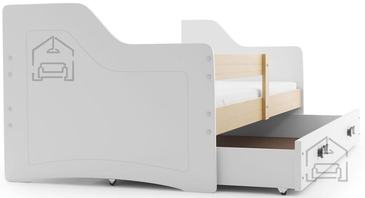 Sodobna otroška postelja z dodatnim ležiščem je namenjena fantom in deklicam. Otroška postelja je narejena tako, da združuje funkcionalnost, modernost in predvsem kakovost in varnost za vašega otroka, ker ima močen okvir iz bora. Praktične dimenzije zagotavljajo, da postelja ne zasede veliko prostora, zato je več prostora za igranje ali učenje. Otroška postelja je narejena iz borovega lesa. Postelja ima prostor za shranjevanje v obliki dveh predalov. | Ležalna površina: 80x160 cm