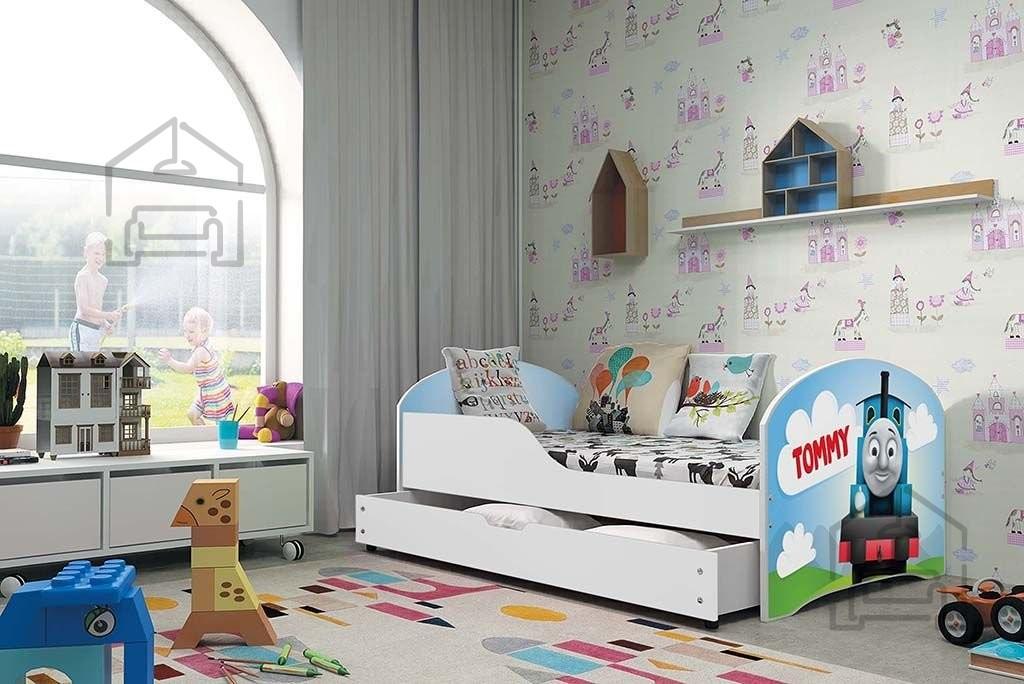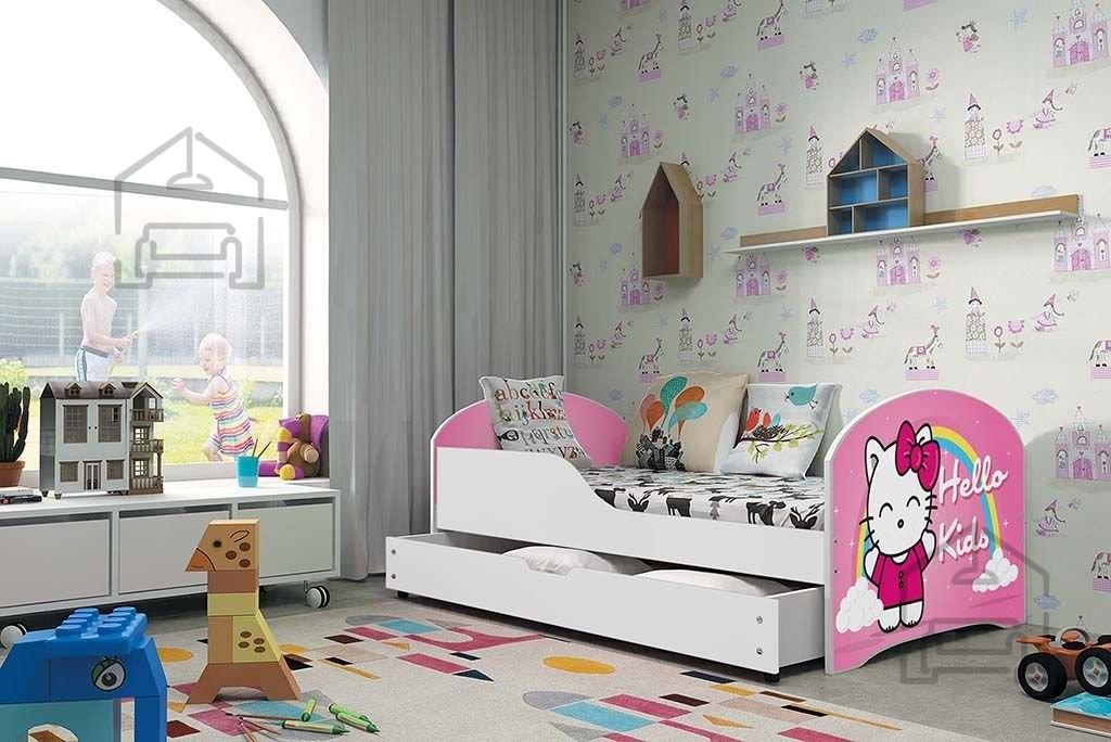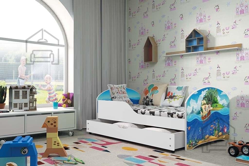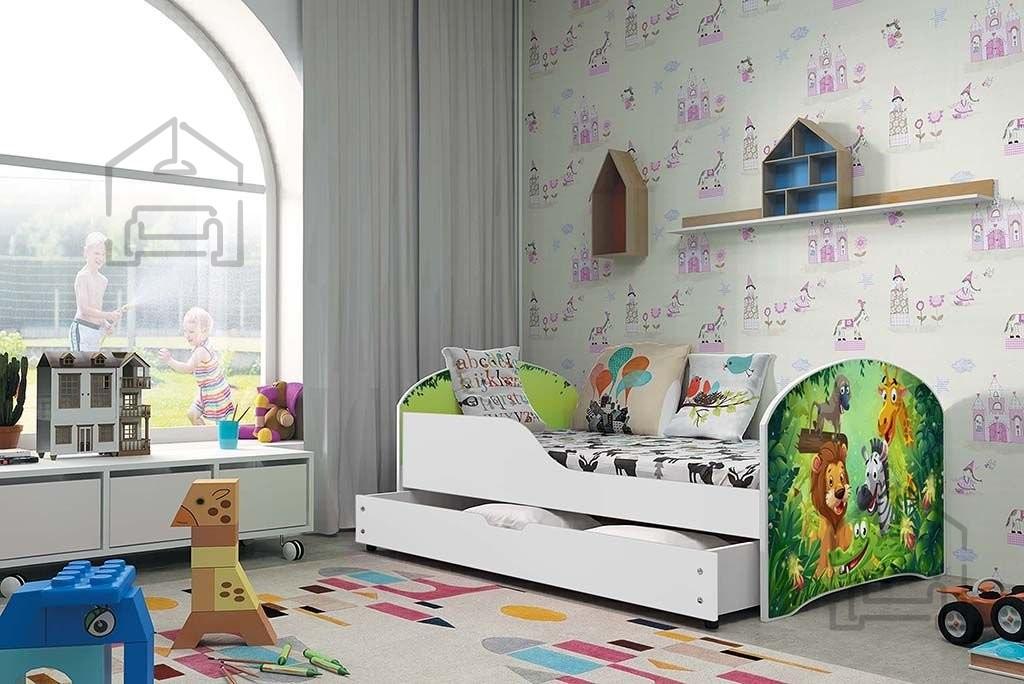 Sodobna otroška postelja z dodatnim ležiščem je namenjena fantom in deklicam. Otroška postelja je narejena tako, da združuje funkcionalnost, modernost in predvsem kakovost in varnost za vašega otroka, ker ima močen okvir iz bora. Praktične dimenzije zagotavljajo, da postelja ne zasede veliko prostora, zato je več prostora za igranje ali učenje. Otroška postelja je narejena iz borovega lesa. Postelja ima prostor za shranjevanje v obliki dveh predalov. | Material: Iverna plošča, MDF