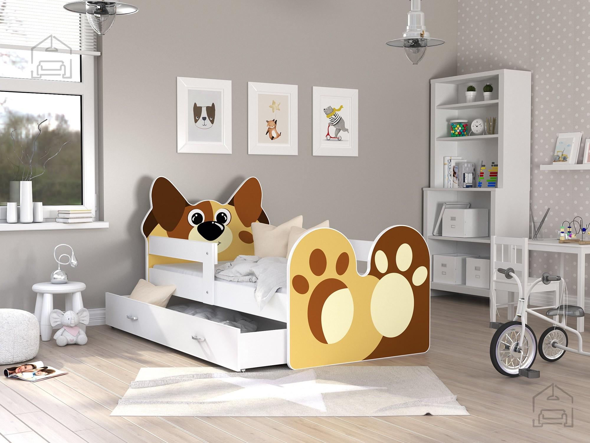 V kompletu: Posteljni pod, ležišče iz pene 7 cmDimenzije: 850x650x1430 mm Postelja je narejena tako, da združuje funkcionalnost, modernost in predvsem kakovost. Posebnost te postelje da je izdelana v obliki živali. | Material korpusa: Laminirana plošča