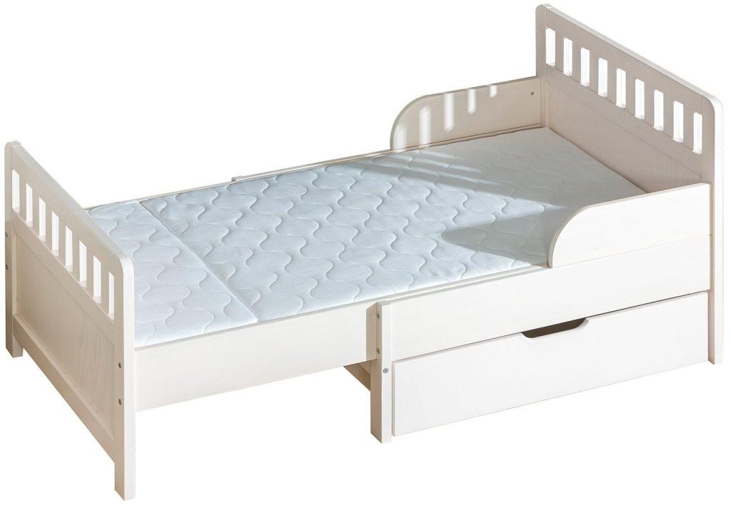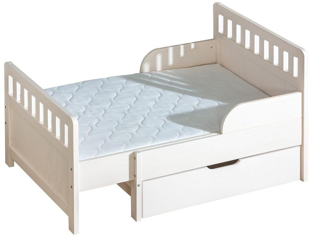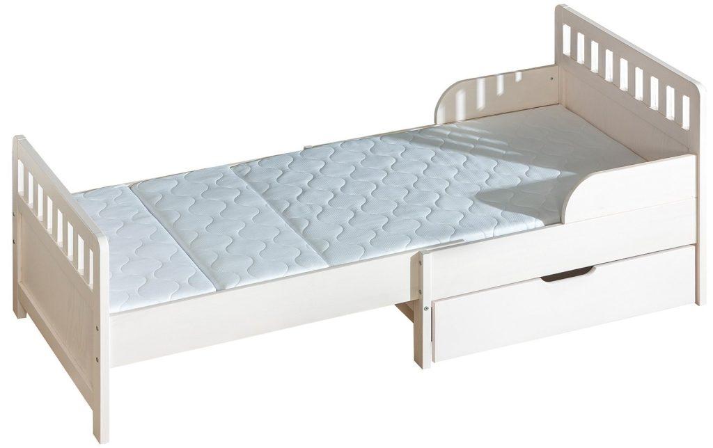 Dimenzije: 910x770x2060 mm Postelja Iga je zelo inovativna postelja, ki raste skupaj z vašim otrokom in je tako primerna od prve postelje naprej. Ima namreč inovativno možnost, da se lahko raztegne na 3 različne dimezije: 80x200 ali 80x170cm ali 80x130 cm. Ob strani ima tudi zaščitno ograjico, ki poskrbi za varnost. Na dnu pa ima dodatni predal za shranjevanje. Vzmetnica ni vključena v ceno. | Material: Iverna plošča, MDF