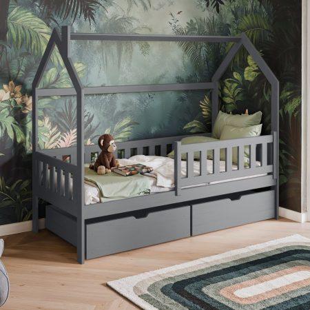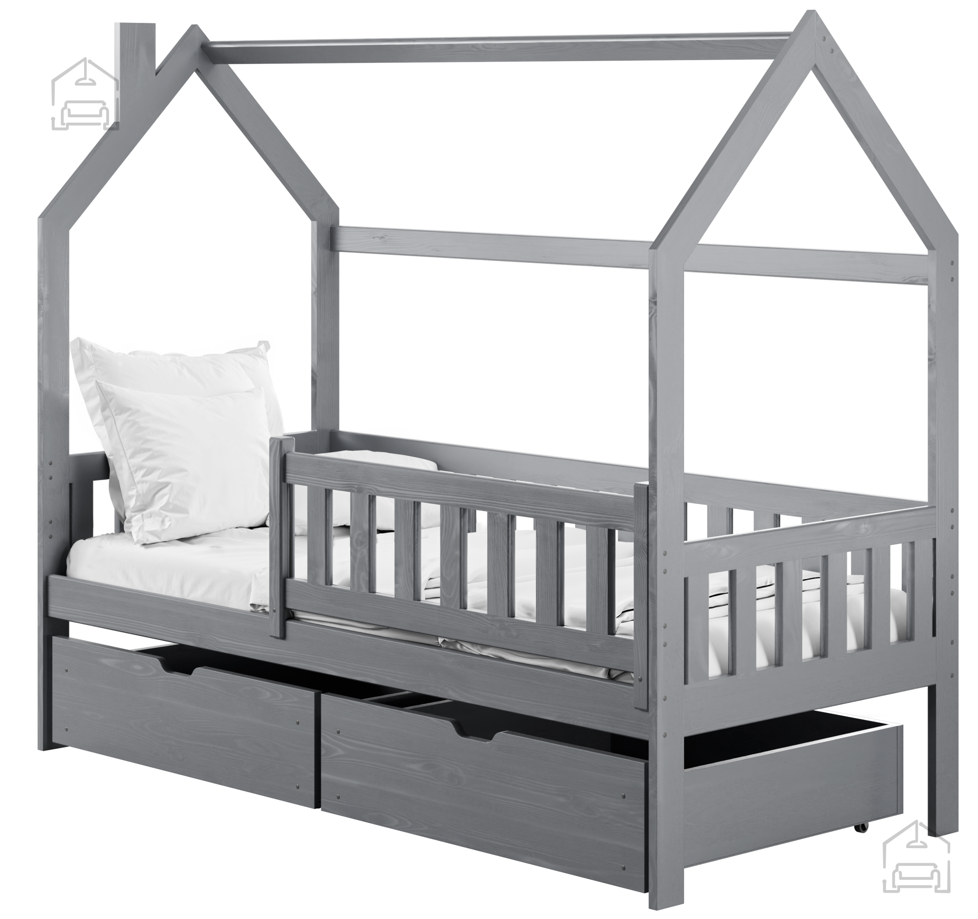 Otroška postelja hiška Natan je več kot le prostor za spanje; je tudi čudovit dodatek k otroški sobi, ki vabi k igri in domišljiji. S svojo edinstveno obliko hiške in elegantno sivo barvo postane osrednji kos vsakega otroškega prostora. Izdelana iz kakovostnega borovega lesa, zagotavlja vzdržljivost in varnost, kar je ključno za miren spanec vašega otroka.
