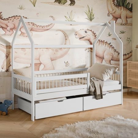 - Estetska privlačnost: Bela barva postelje se prilega različnim barvnim shemam, zaradi česar je enostavno vključljiva v katerikoli slog otroške sobe. Oblika hiške spodbuja otroško domišljijo in ustvarja čaroben ambient.